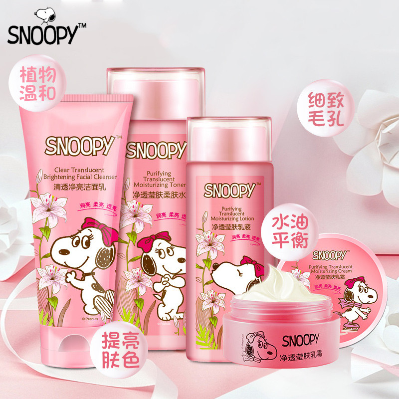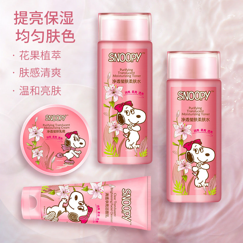 史努比净白莹肤护肤套装少女洁面水乳霜学生化妆品保湿补水滋润