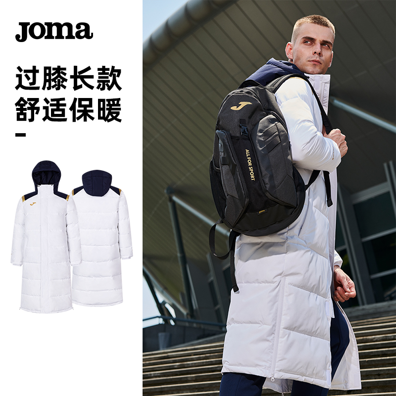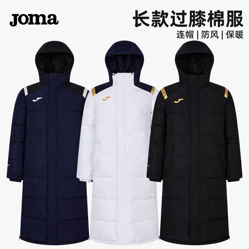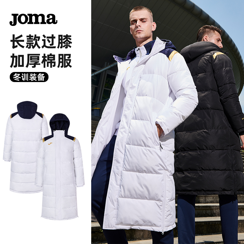 Joma长款棉服男体育生秋冬训练大衣新款保暖棉衣加厚连帽棉袄外套