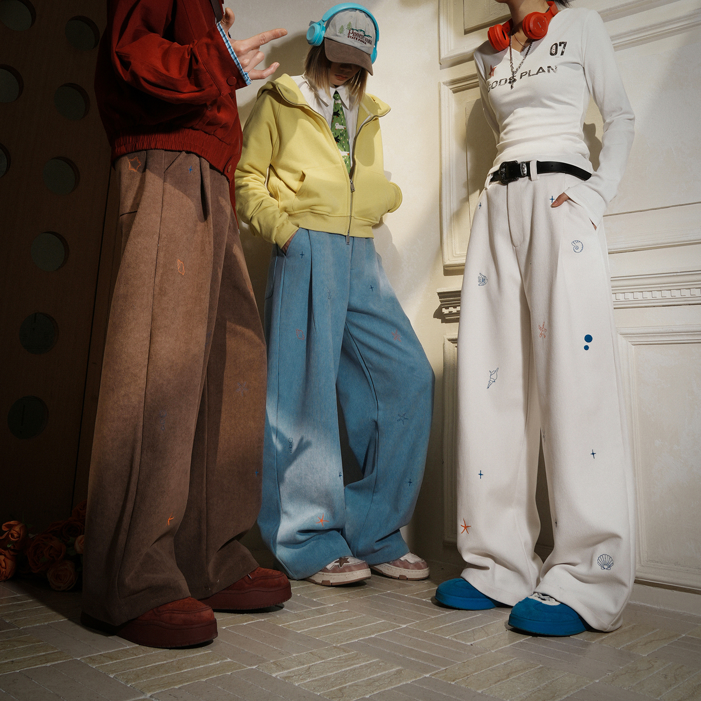lemanism美式潮流灯芯绒满绣休闲裤男2025秋冬季情侣款长裤子女