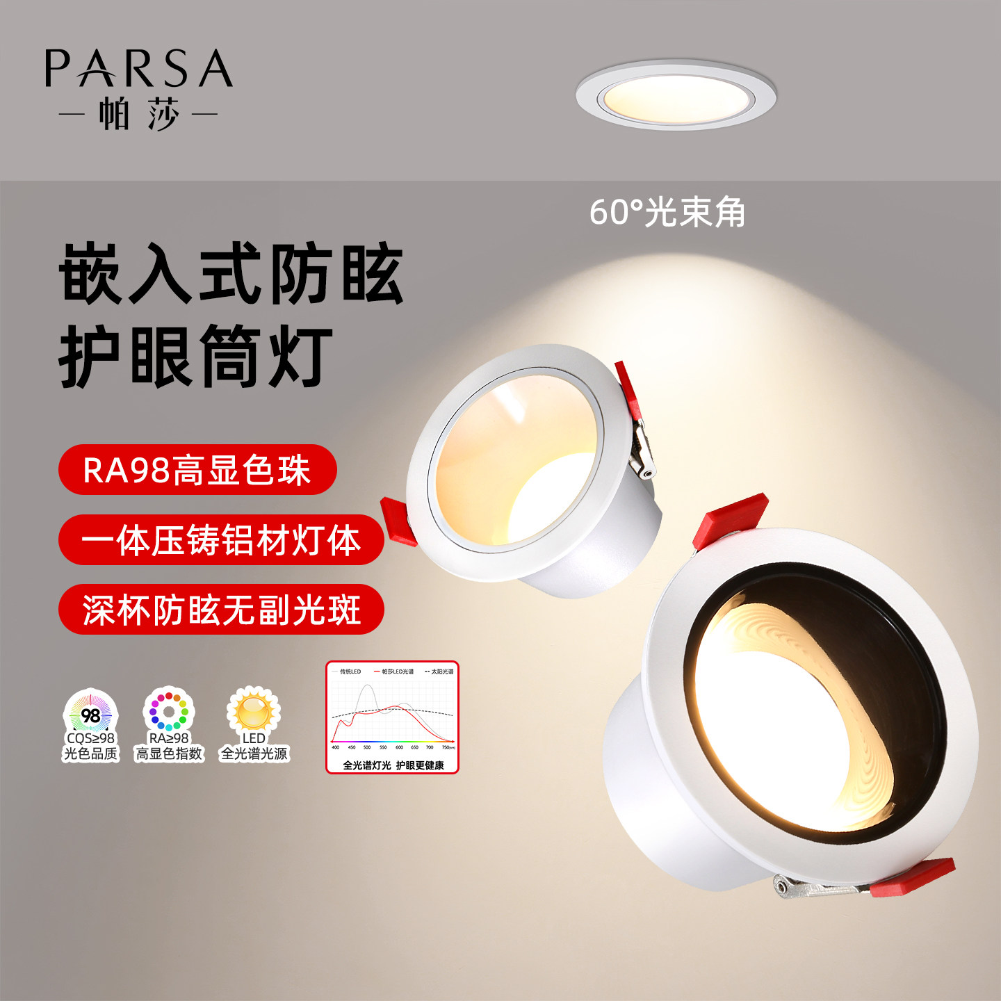 帕莎筒灯led嵌入式天花牛眼灯防眩光无主射灯客厅吊顶7.5开孔洞灯