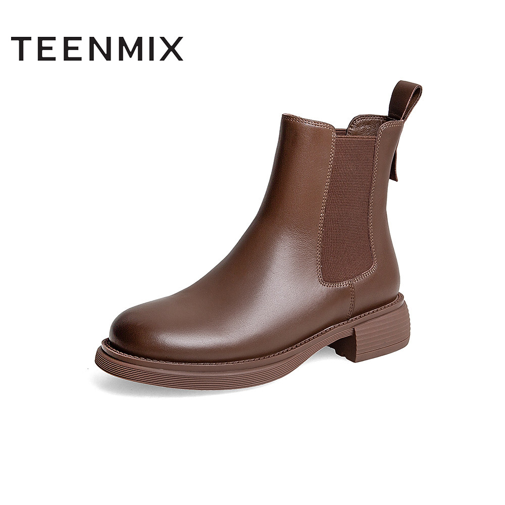 天美意切尔西靴女通勤短靴低跟皮靴冬新商场同款BE091DD3