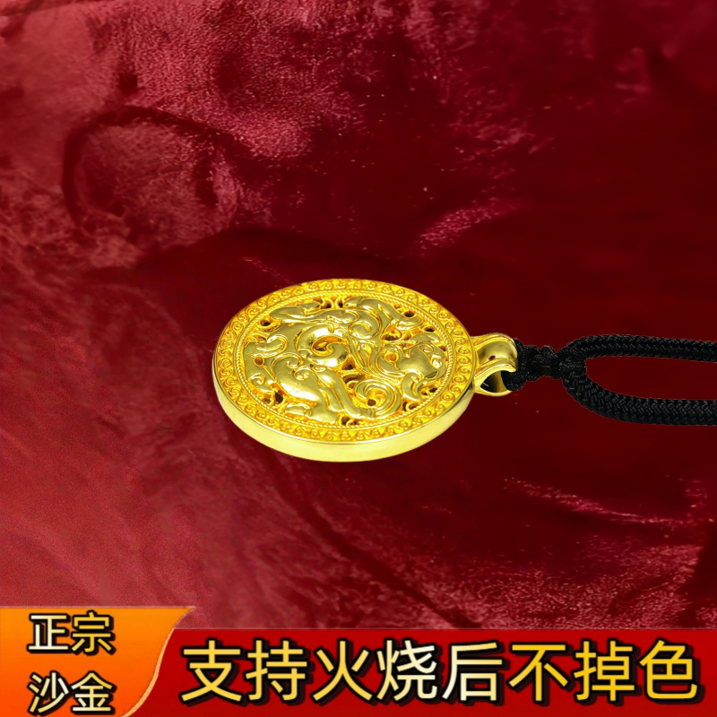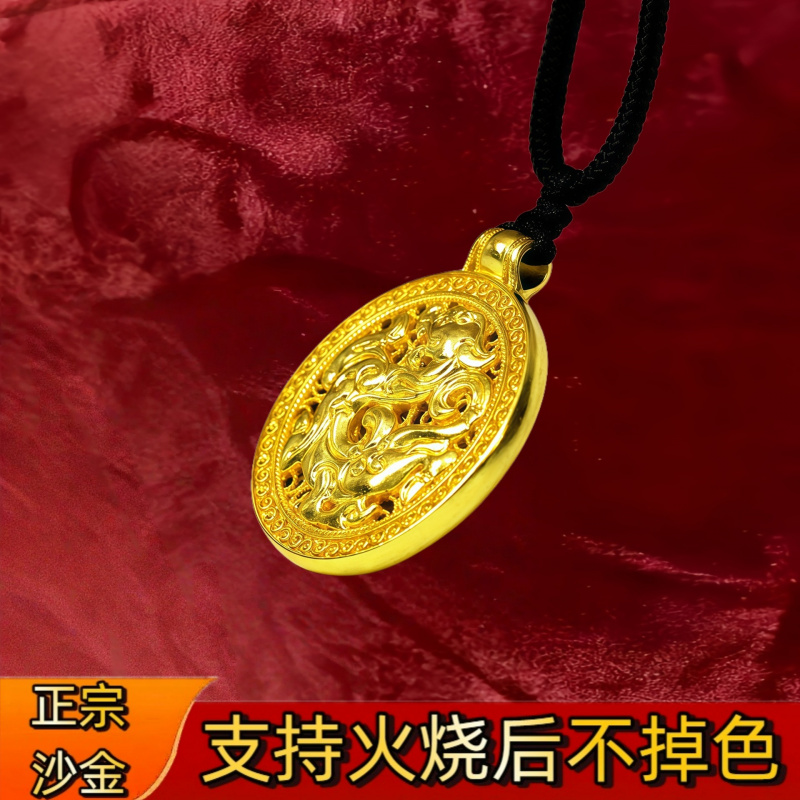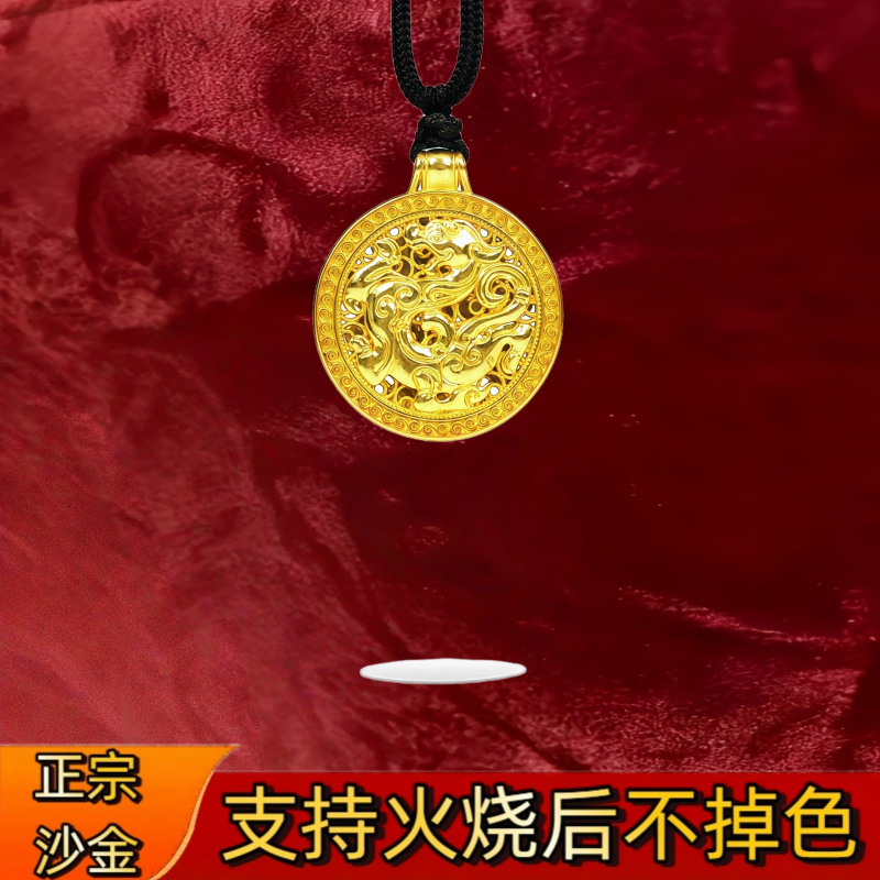 香港周六火烧不掉色金店同款古法沙金十二生肖龙吊坠本命年项链