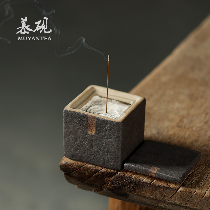 慕砚日式侘寂风香炉香座苔岩粗陶香插禅意方盒香薰炉沉香白檀香皿