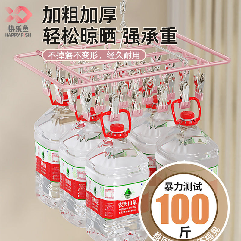 快乐鱼不锈钢晒袜子神器多夹子晾衣架家用凉内衣内裤婴儿晾晒架子