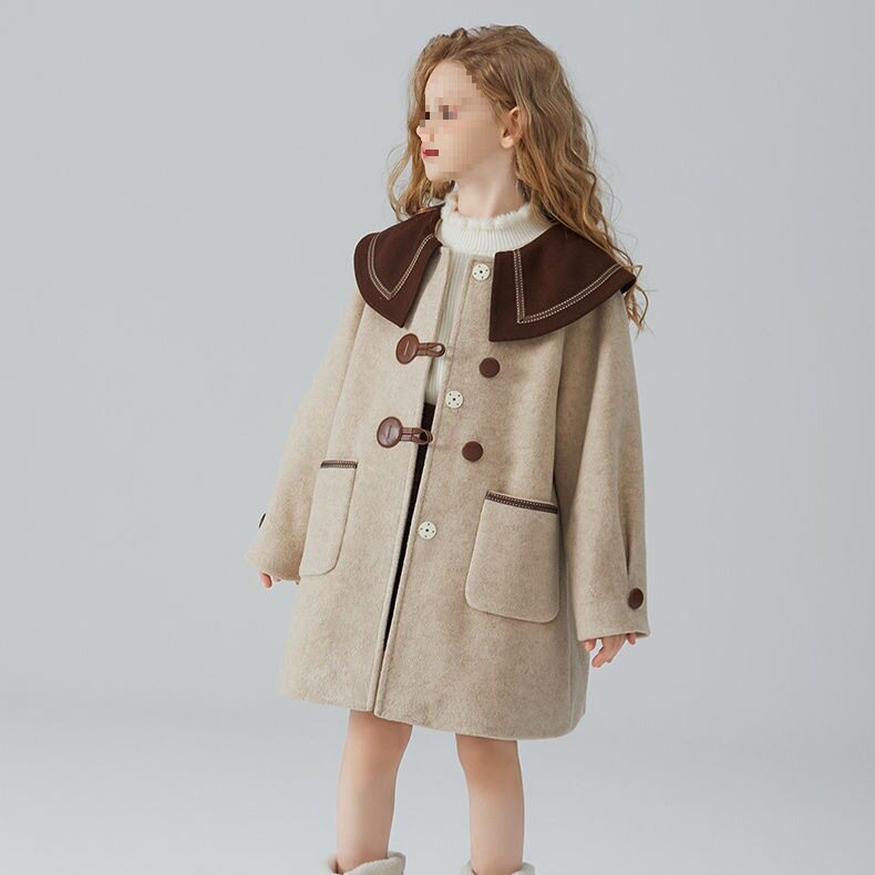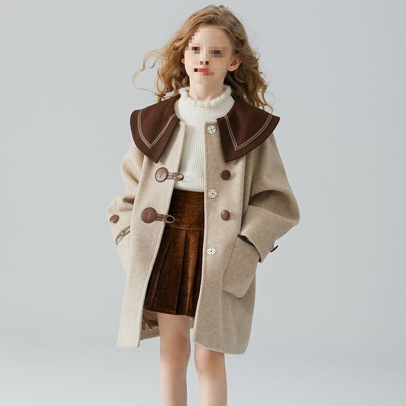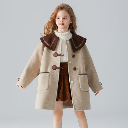 女童毛呢外套宽松学院风洋气儿童呢子大衣春秋款加厚夹棉冬天外套