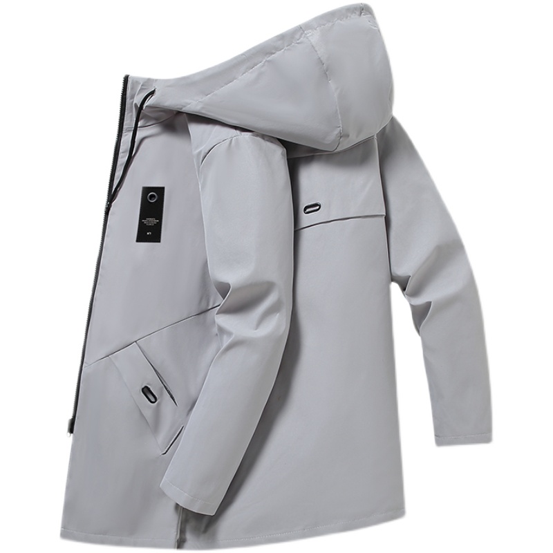 2025春秋中长款风衣外套男休闲百搭黑色夹克男士薄款纯色连帽上衣
