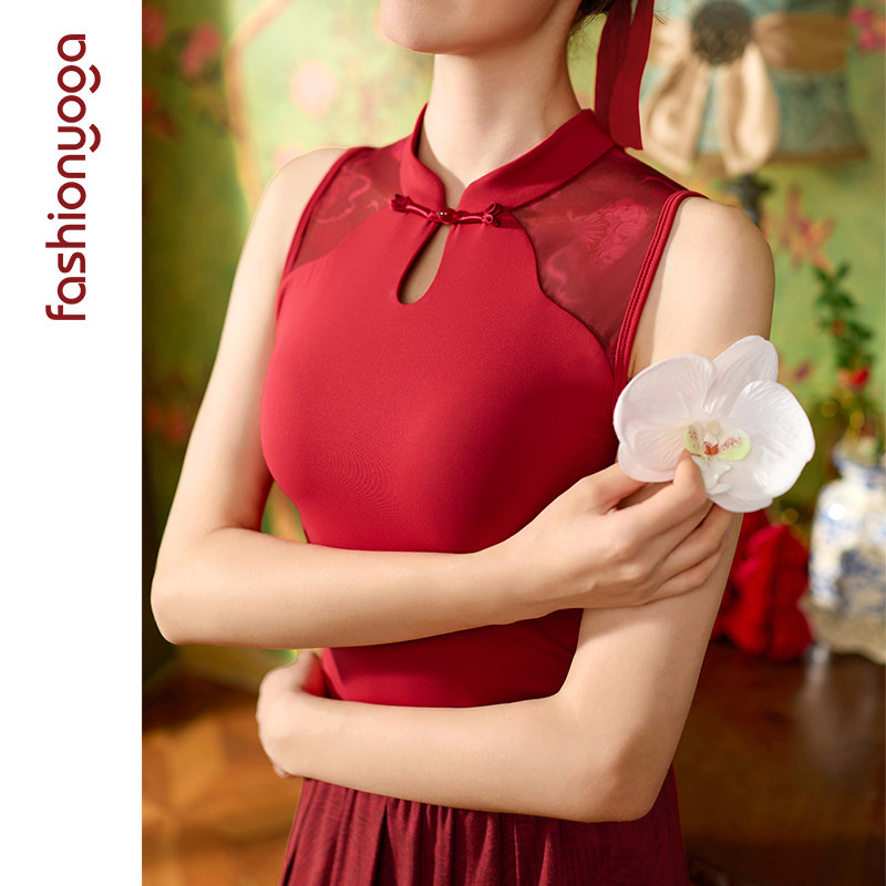 凡圣瑜伽服新中式立领盘扣无袖优雅显瘦裸感背心上衣FC15255
