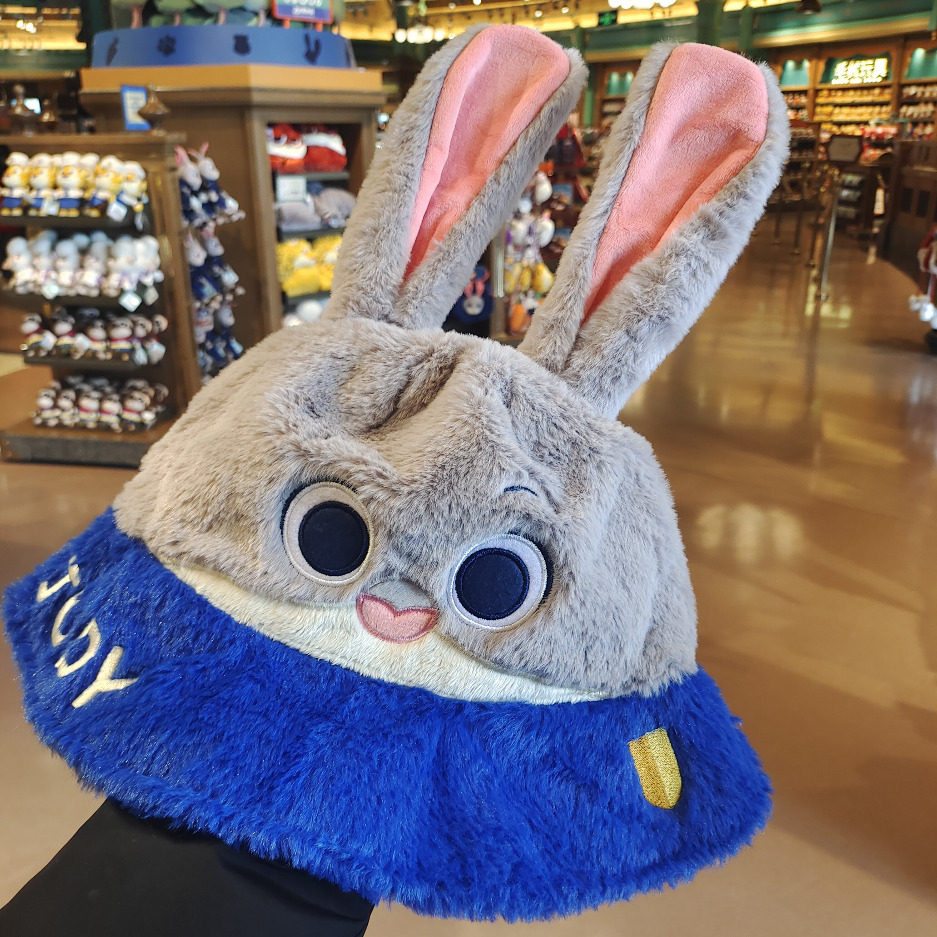 上海迪士尼租帽子朱迪尼克卡通毛绒渔夫帽维尼草莓熊成人帽子租赁