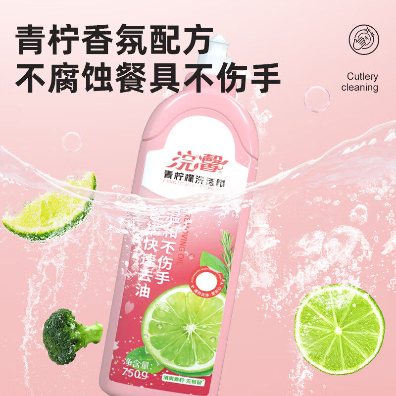 750ml大瓶装青柠洗洁精家庭装不伤手厨房餐饮正品去油污清洁剂