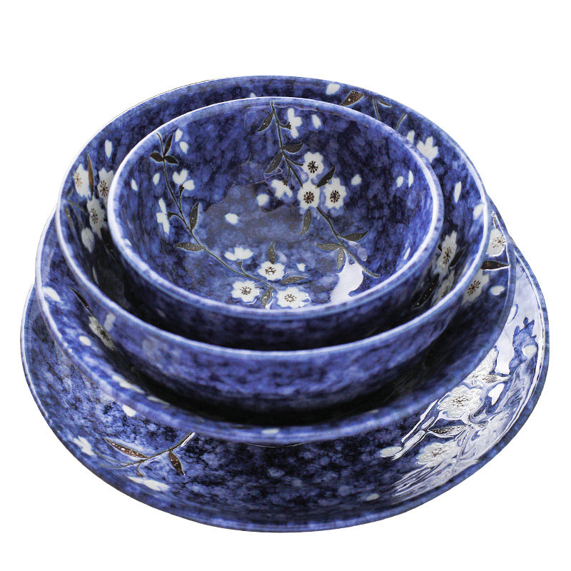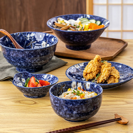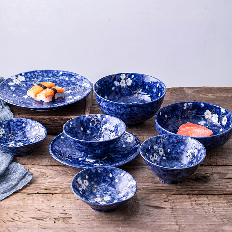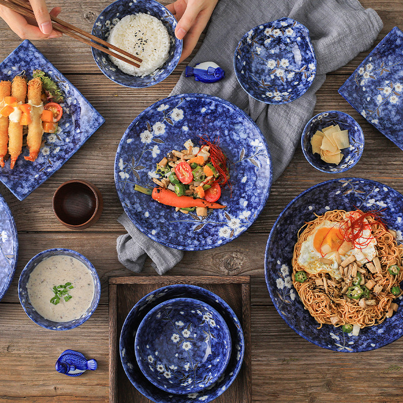 日本原装进口美浓烧蓝樱花陶瓷日式和风餐具菜盘深盘子碗碟子家用
