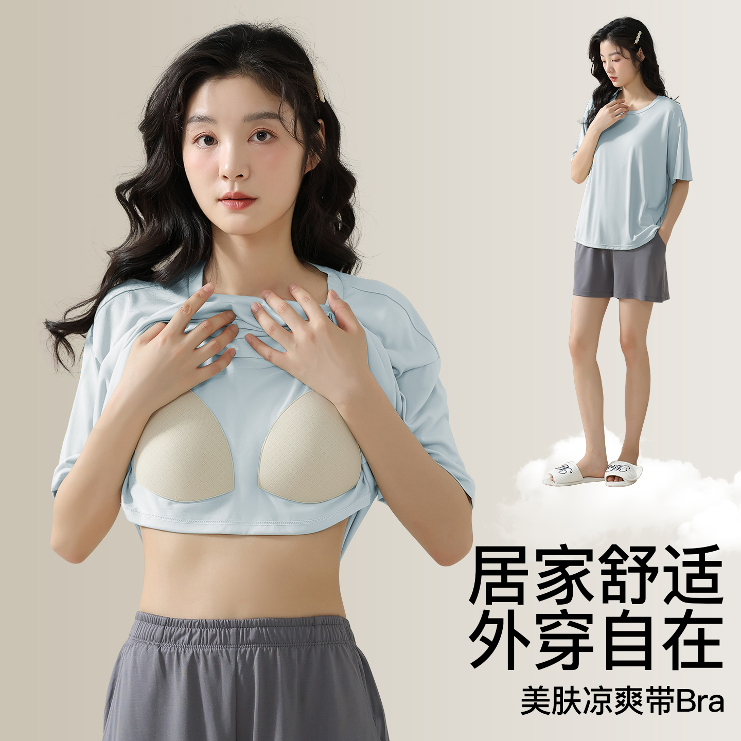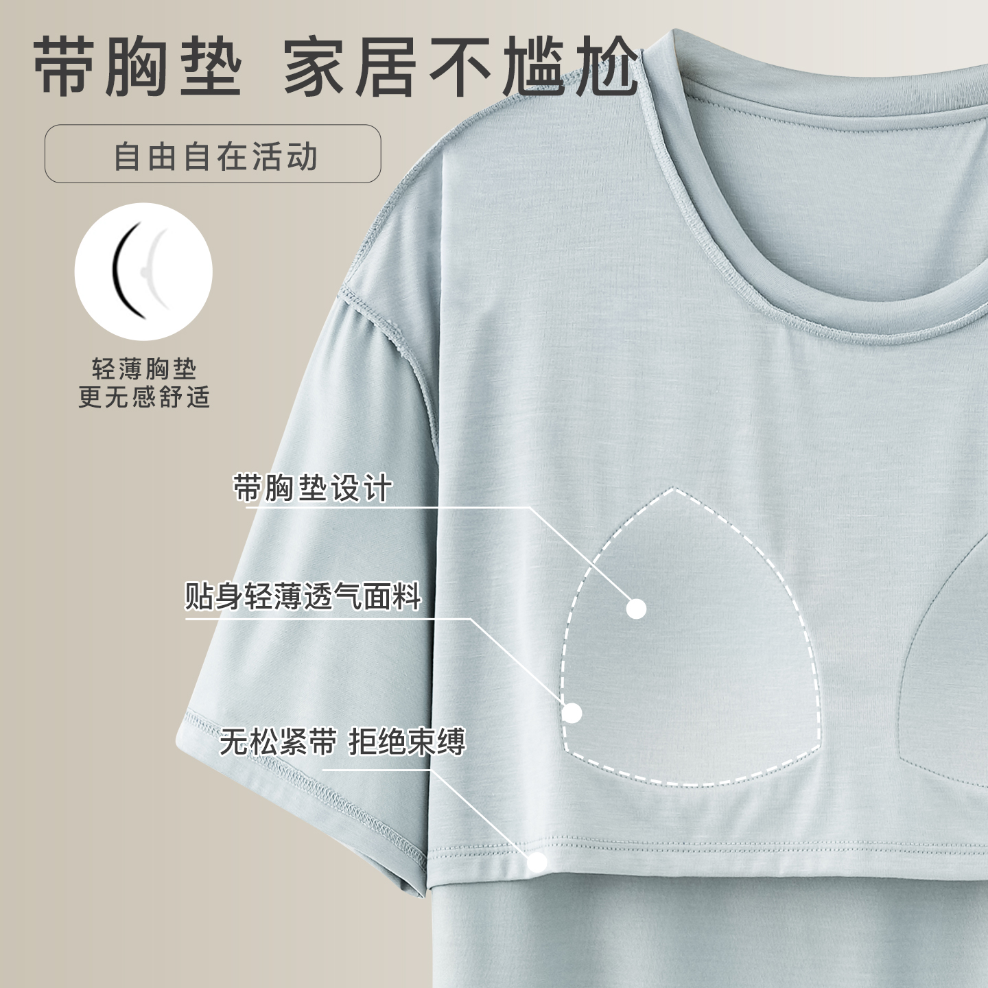 带胸垫睡衣女款2025新款夏冰丝短袖短裤莫代尔夏天薄款外穿家居服