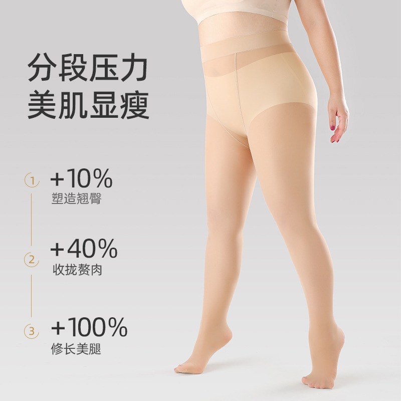 大码钢丝袜女夏季薄款防勾丝加肥加大胖mm200斤不掉档肉色连裤袜