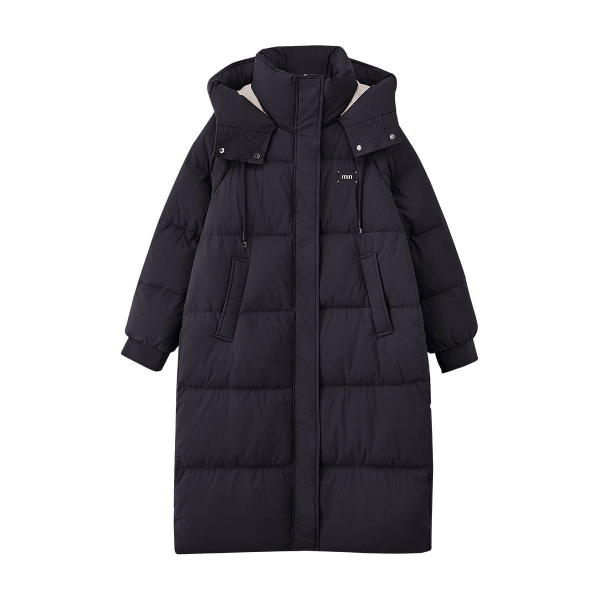 茵曼时尚通勤保暖长款羽绒服女25年冬季宽松显瘦立领连帽厚外套女