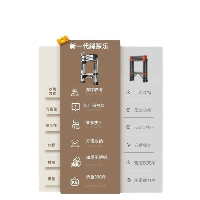 奥鹏多功能家用伸缩梯子加厚不锈钢折叠小室内便携升降人字梯其他