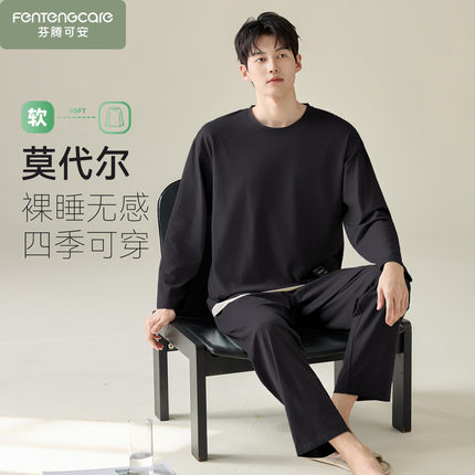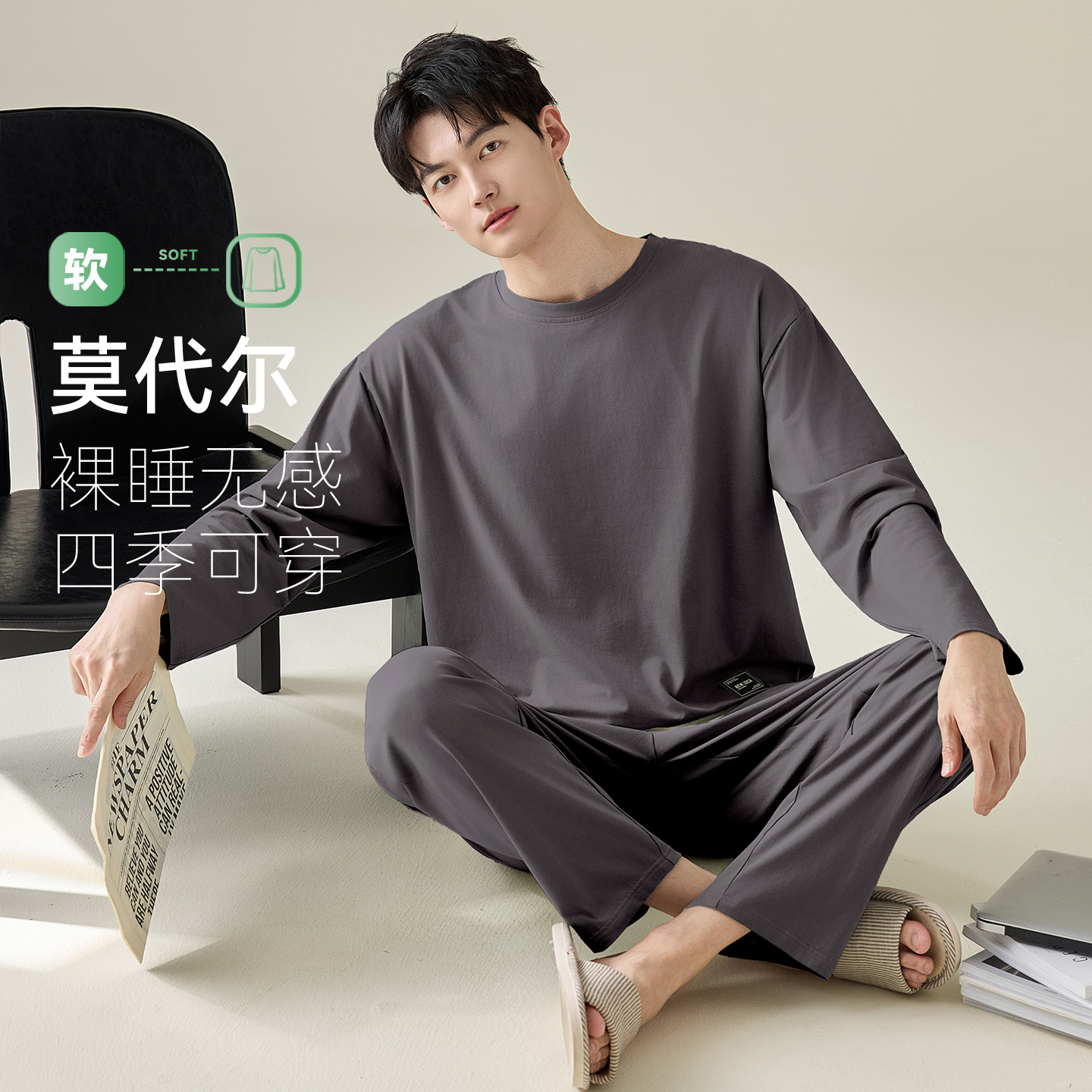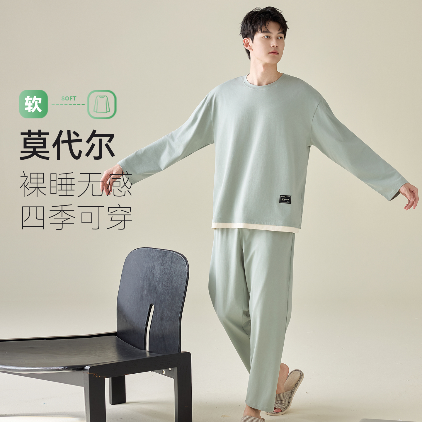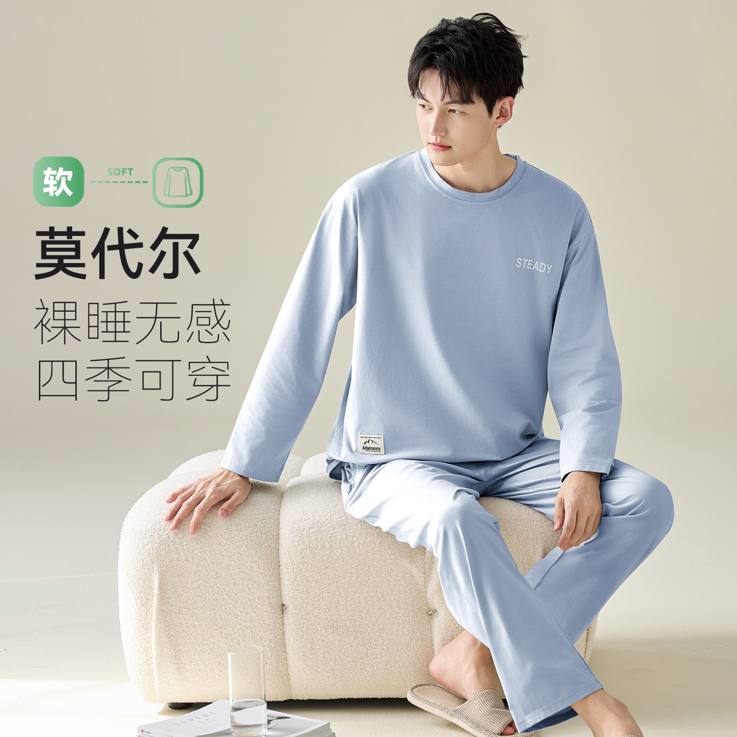 男士睡衣春秋季男款2025新款莫代尔棉绸套装家居服秋冬款长袖大码