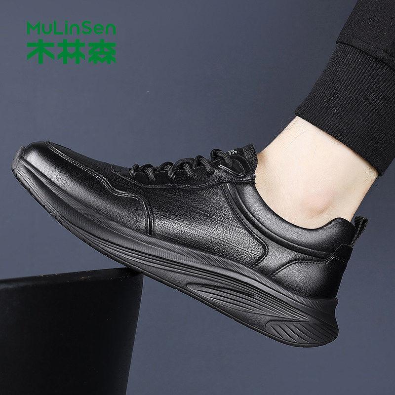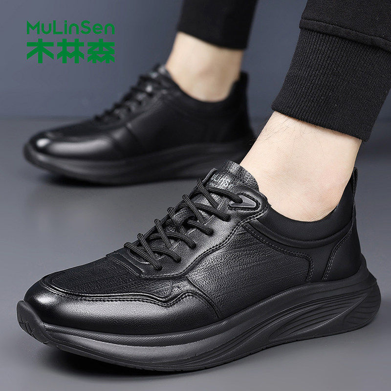 木林森男鞋2025新款秋季潮流百搭运动鞋厚底男士真皮软底休闲皮鞋