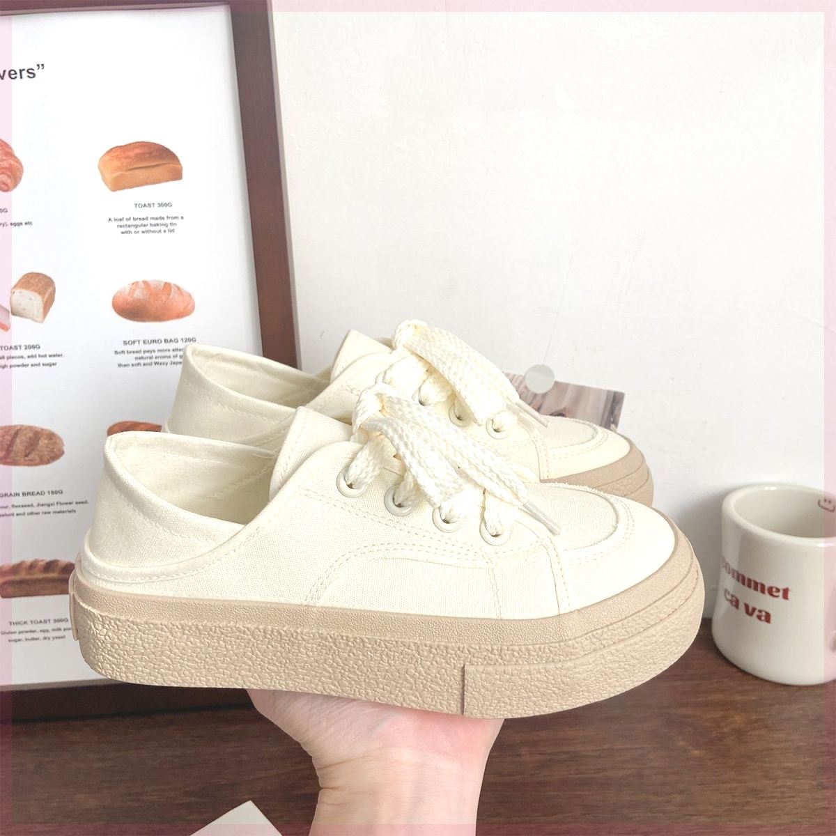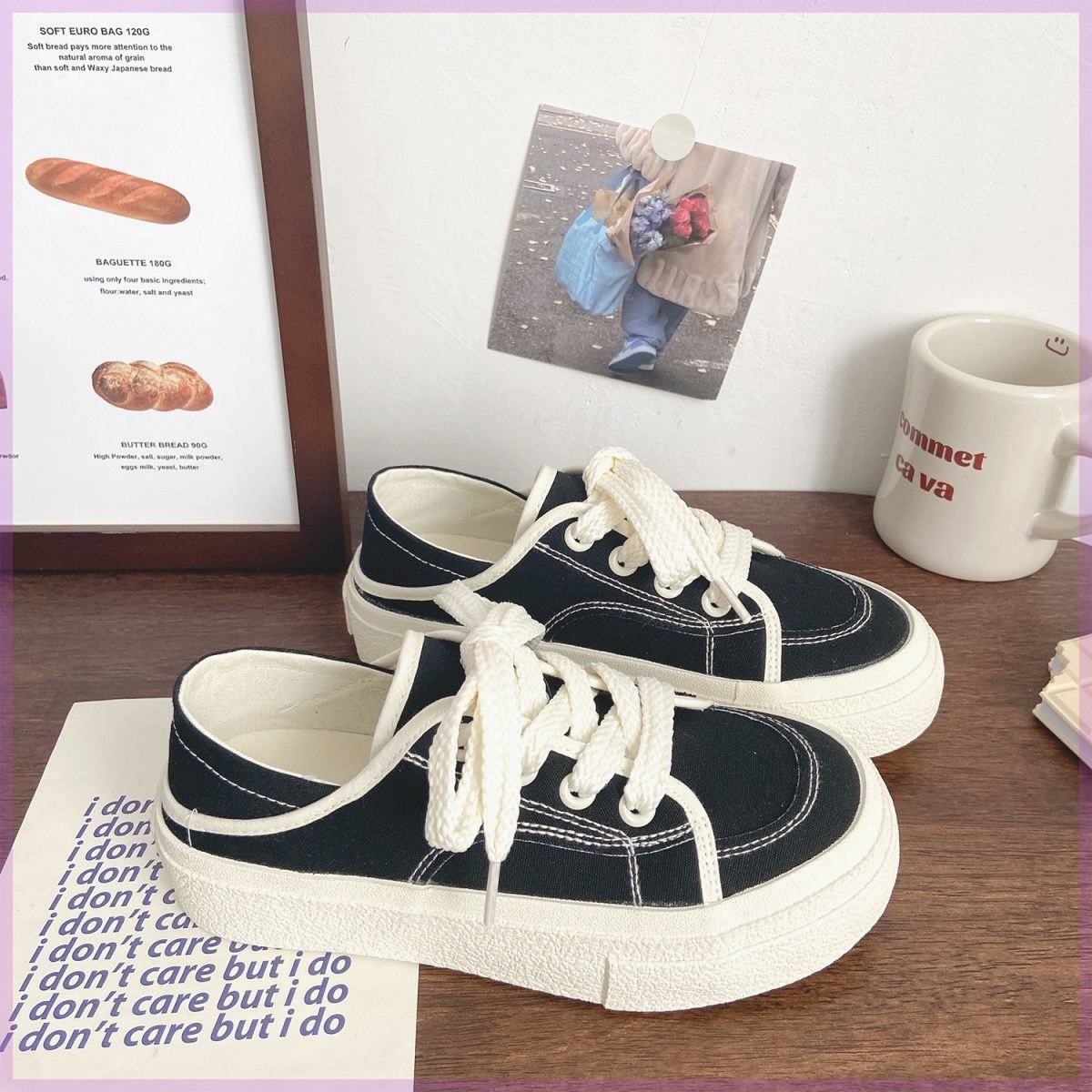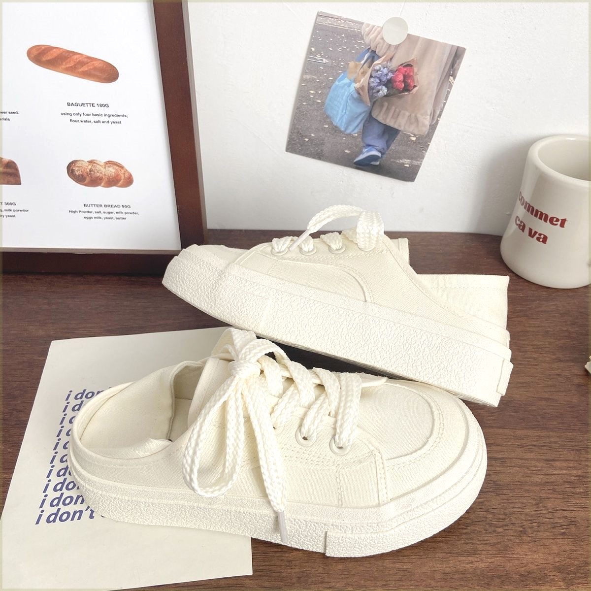 帆布鞋女夏季半拖两穿懒人鞋一脚蹬帆布鞋厚底小白鞋休闲百搭板鞋