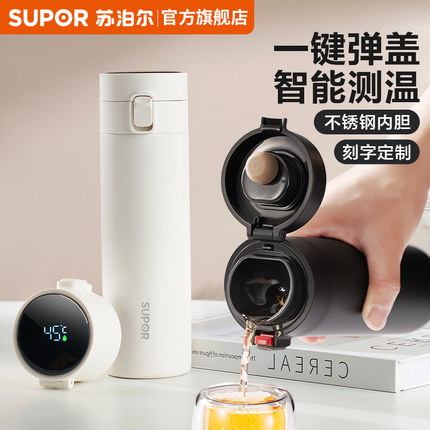 苏泊尔保温杯男款智能显温保温水杯定制刻字爸爸礼物父亲泡茶杯子