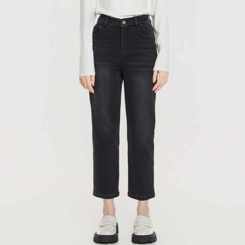 傲丝度加绒牛仔裤女2025冬季新款高腰显瘦小个子百搭休闲裤直筒裤