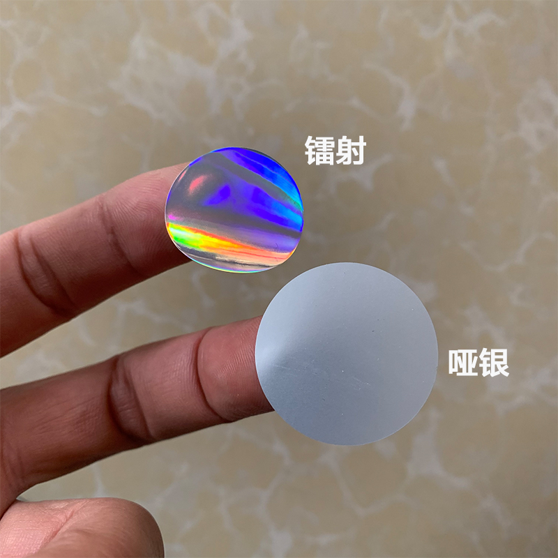 圆形哑银亚银镭射空白贴纸封口贴标签5丝超强粘胶水不干胶可定制
