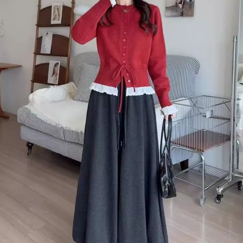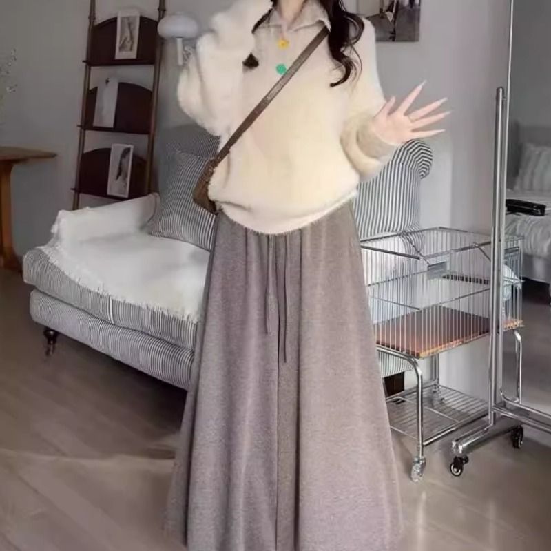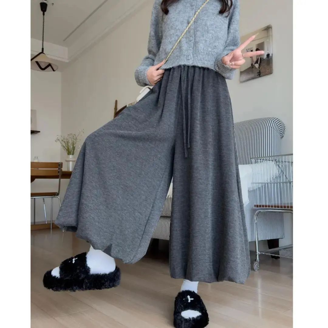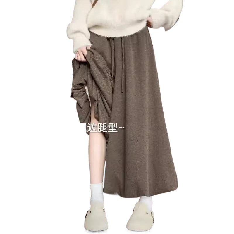 糯米花苞裤垂坠感软糯宽松显瘦大码胖MM半身裙阔腿裤春秋季咖色