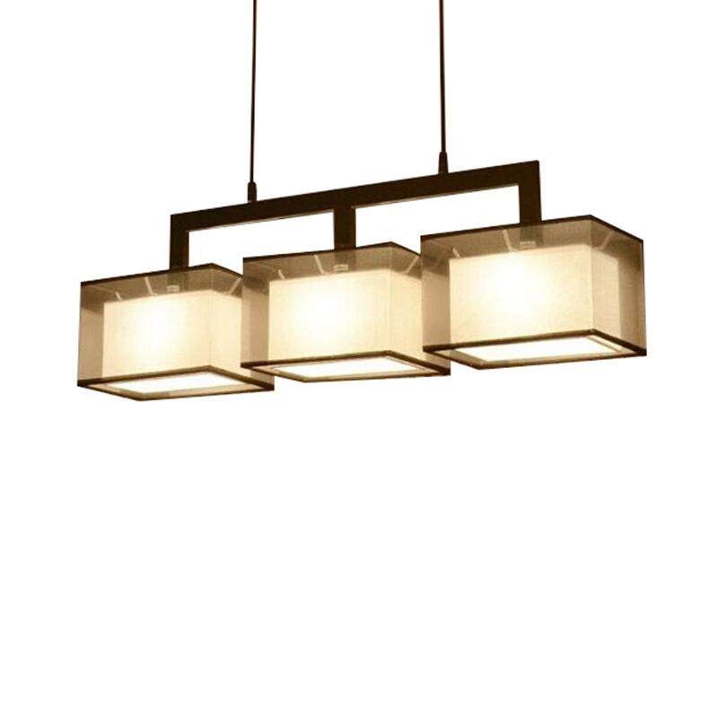 新中式餐厅吊灯三头布艺现代简约吧台灯具创意铁艺仿古长方形led