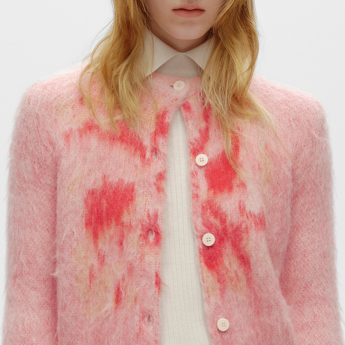 【孙千同款】BLUE ERDOS冬季新摩登圆领提花马海毛混纺针织开衫