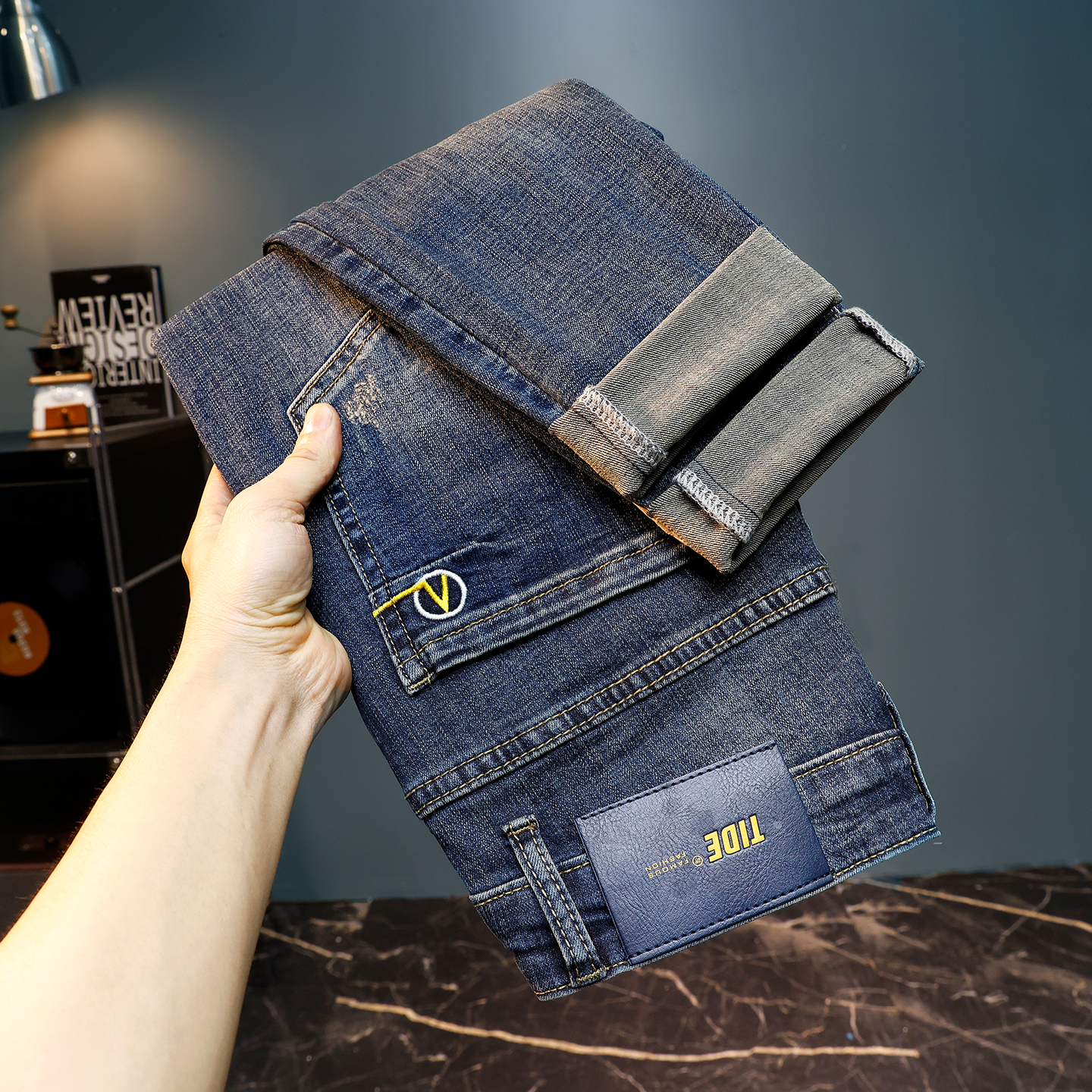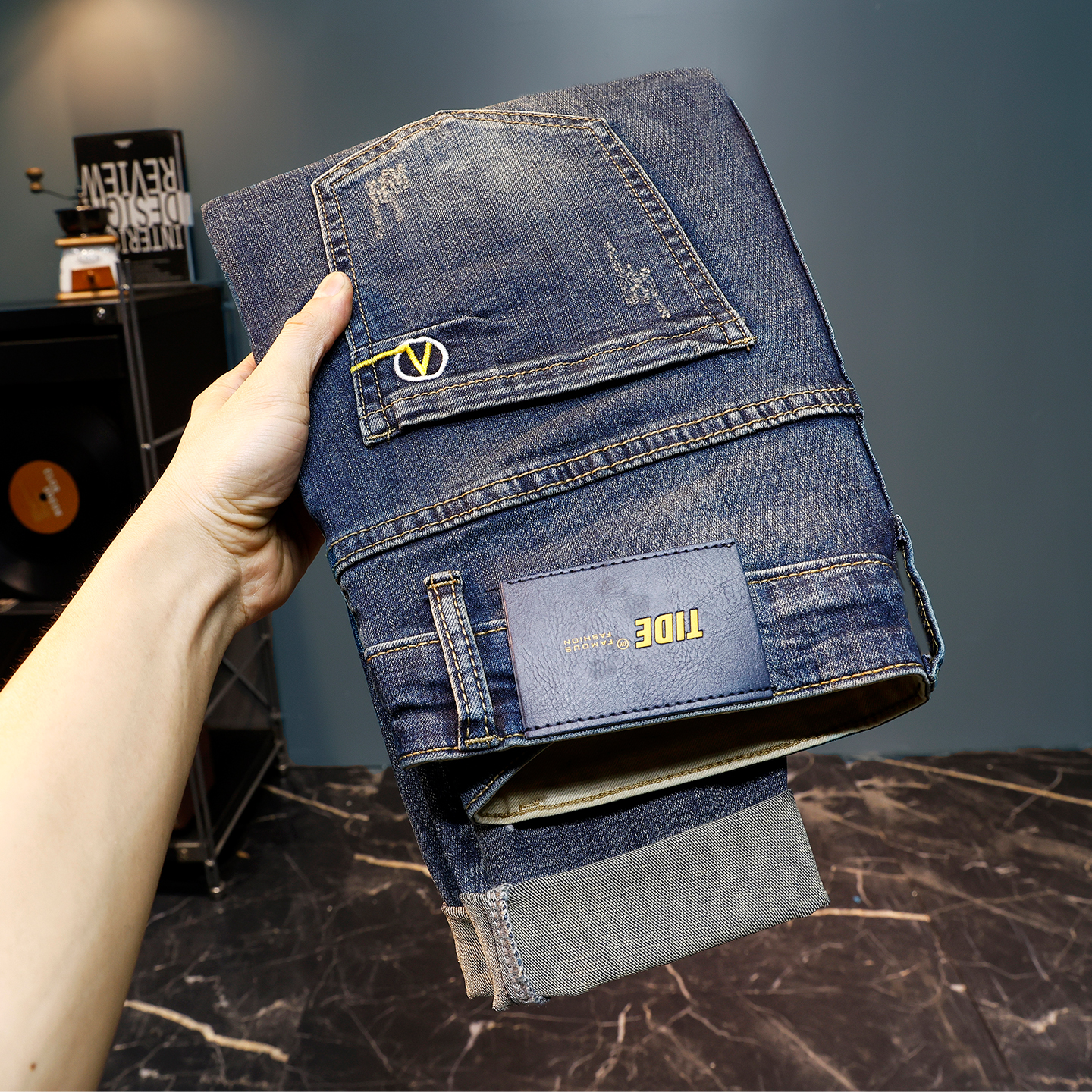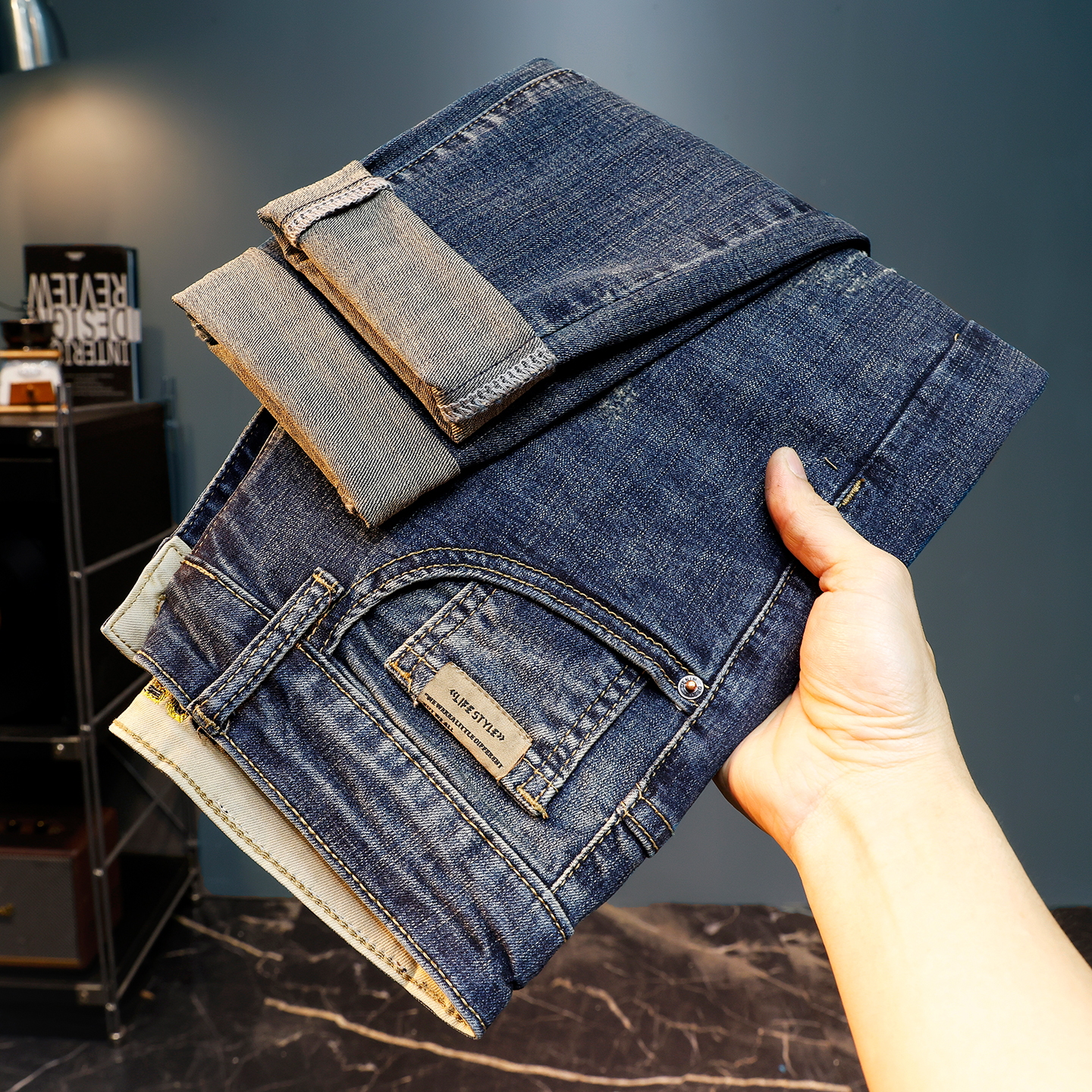 男士牛仔裤2025秋冬季新款潮牌修身水洗蓝复古休闲百搭小脚九分裤