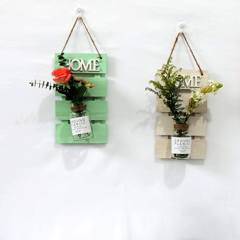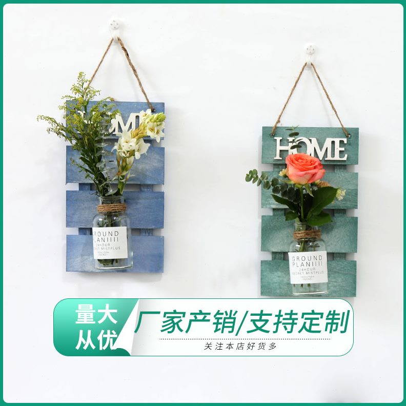 挂件玻璃壁挂花瓶水培花瓶创意家居花瓶壁挂木质墙上房间装饰