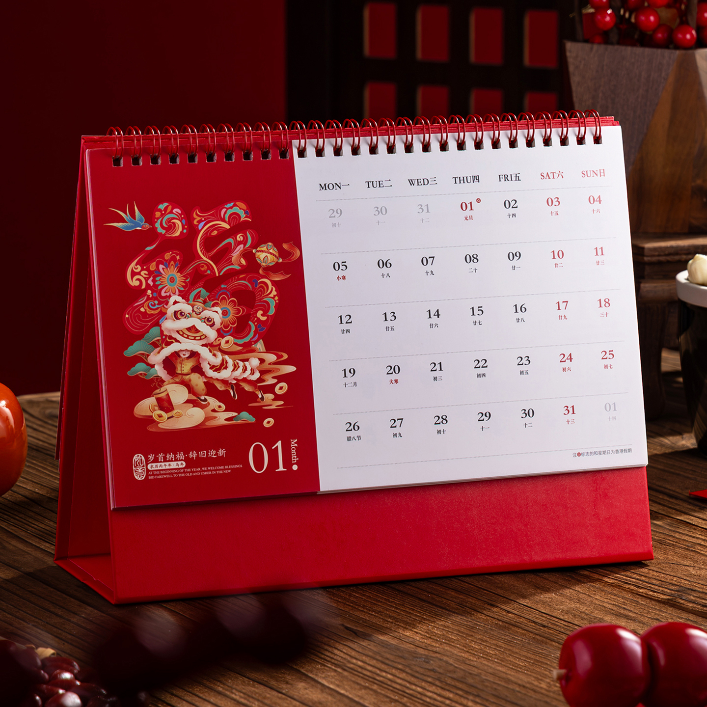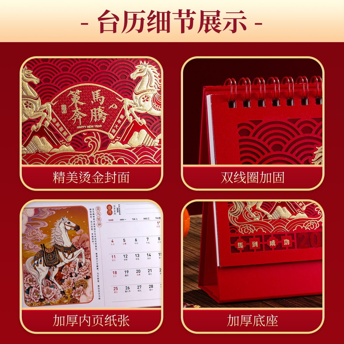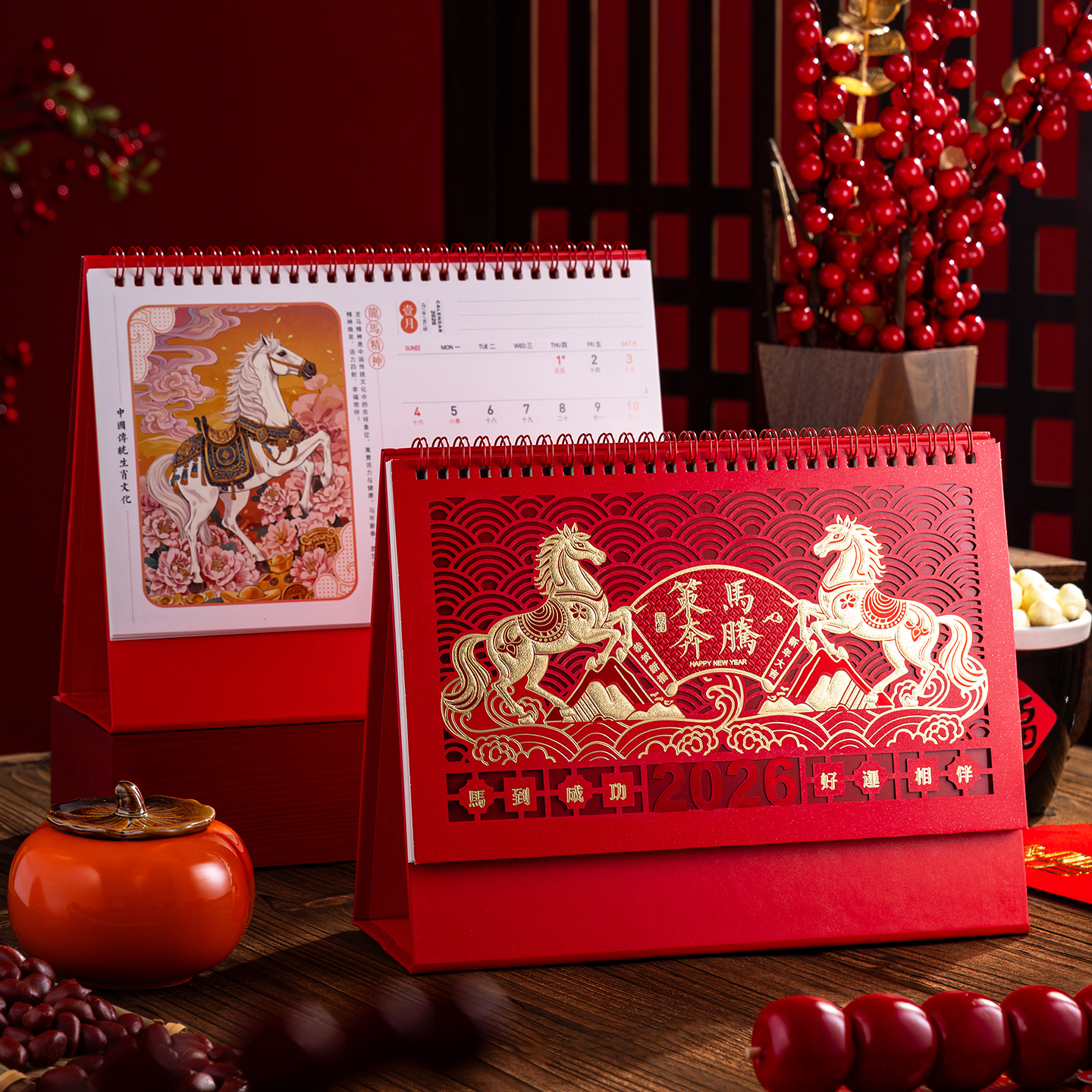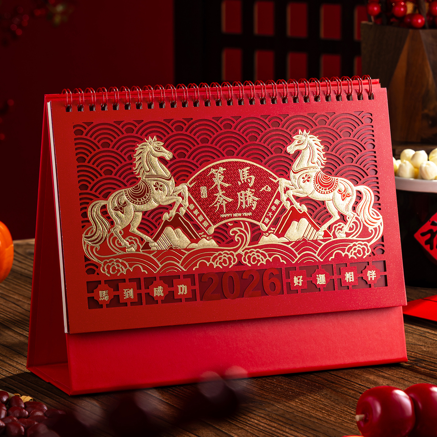2026年新款镂空台历大号中国红红色喜庆三角日历国风商务桌面摆件记事打卡马年创意月历办公室企业礼品假期