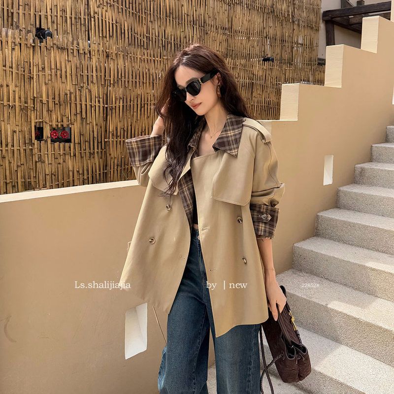 LS述致 时尚百搭翻领收腰系带风衣外套2025秋季新款上衣女装22652