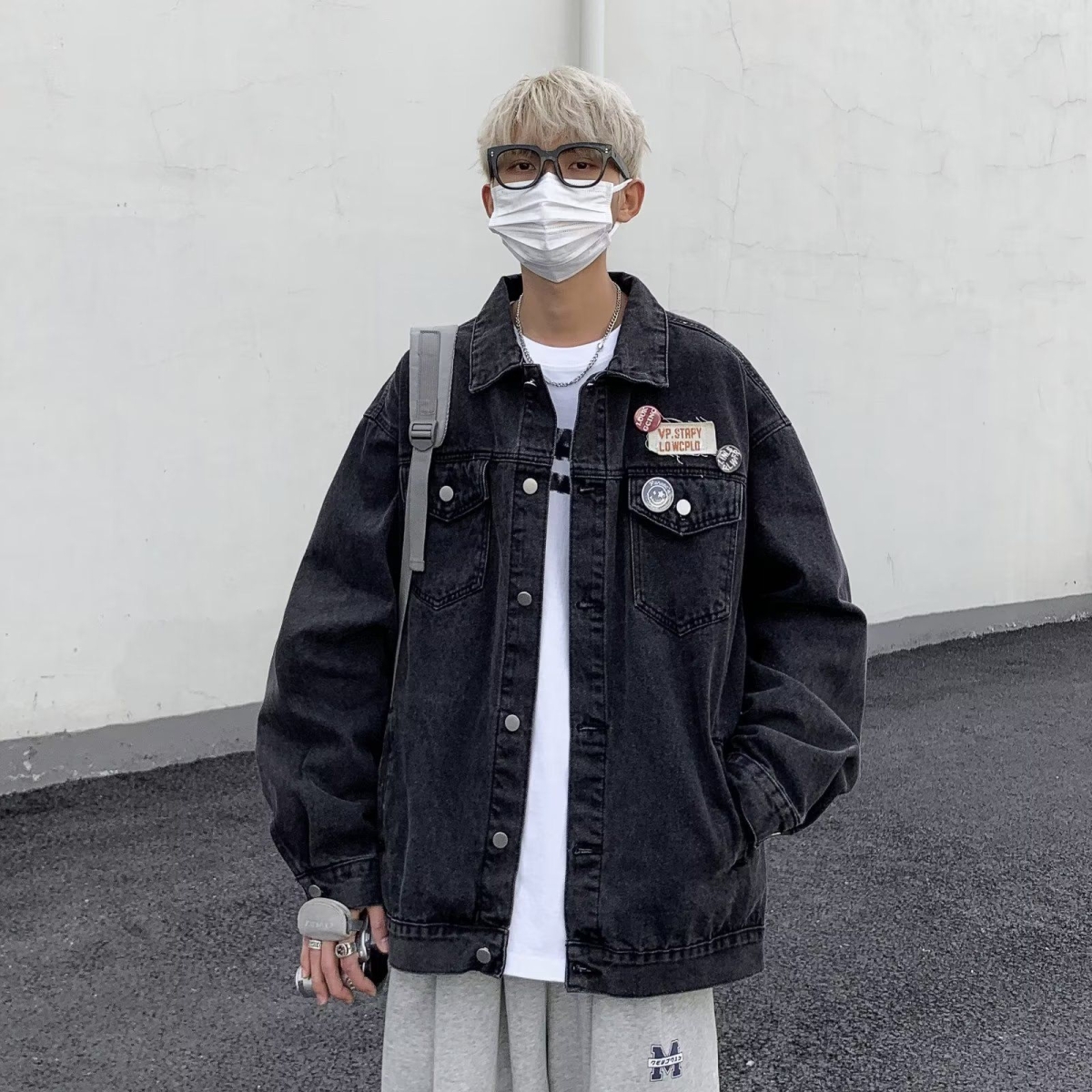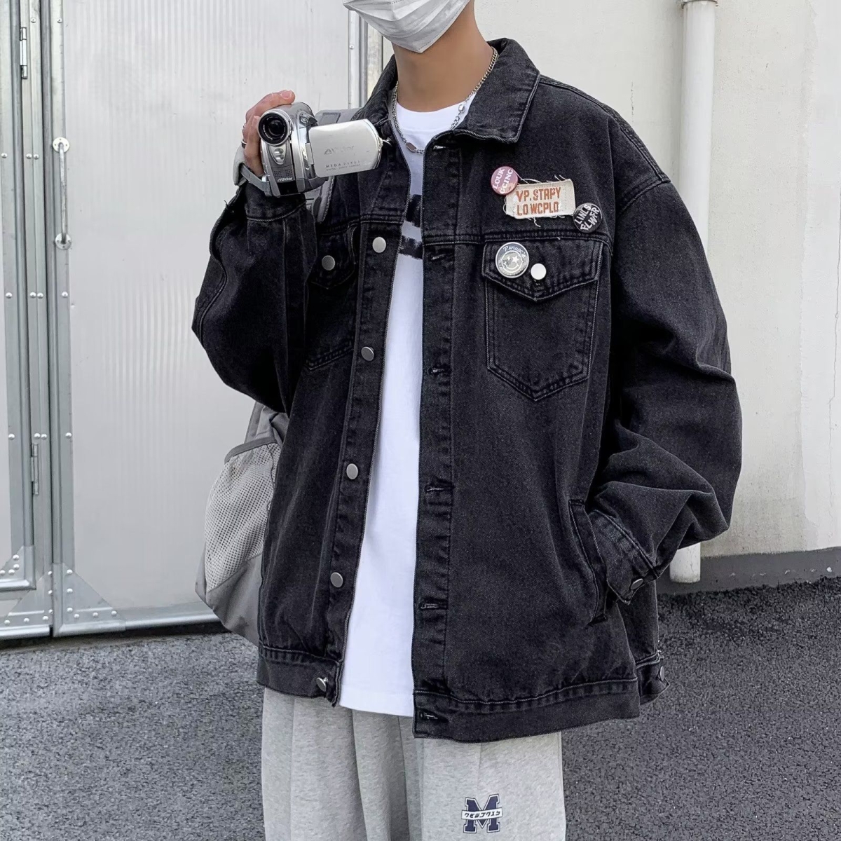 春秋日系字母牛仔外套男美式街头青年休闲夹克上衣潮设计感小众潮