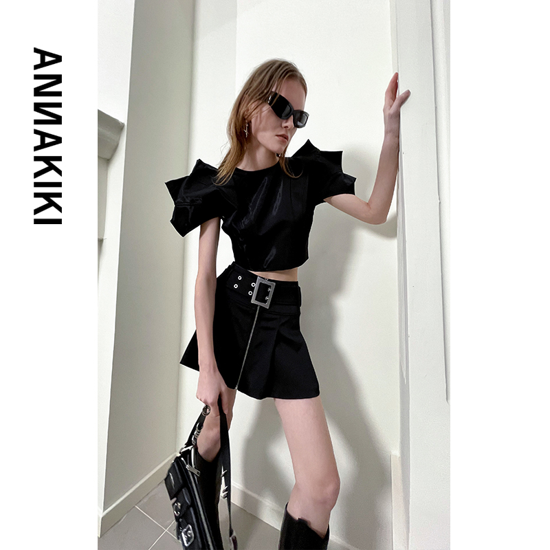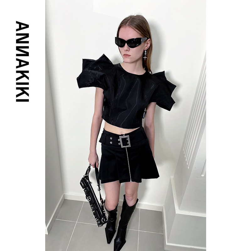 ANNAKIKI 上衣 夏季新品设计师小众设计3D立体音波廓形短款上衣女