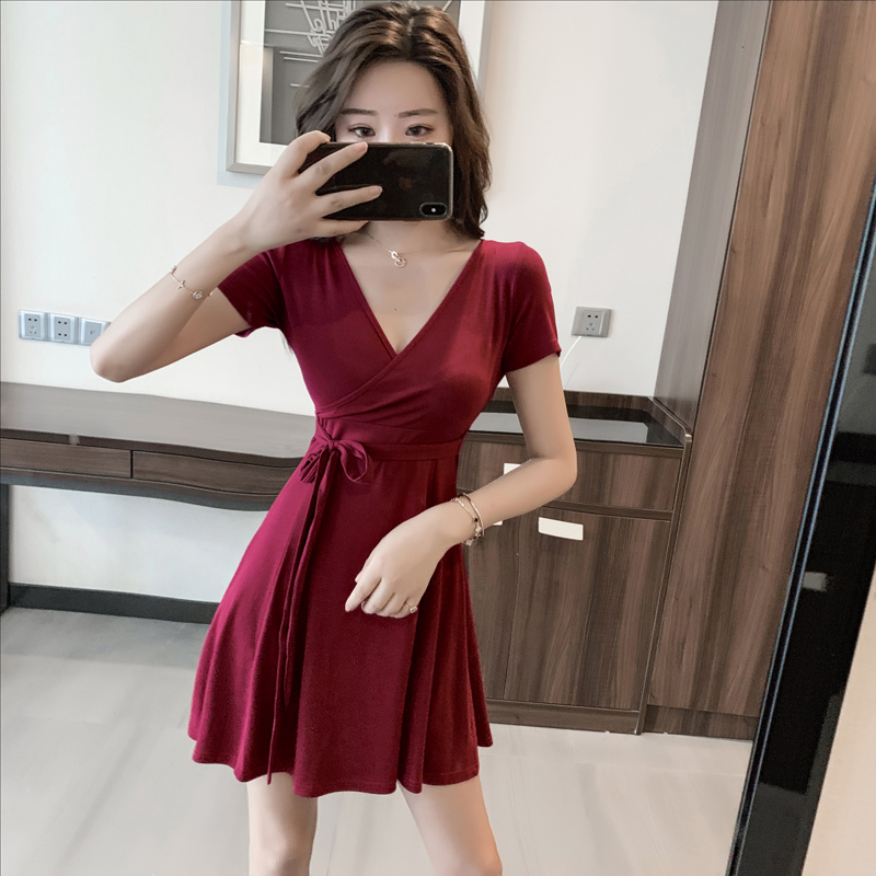 性感连衣裙2025新款夜 店女装夜总店低胸交叉V领绑带收腰A字裙子