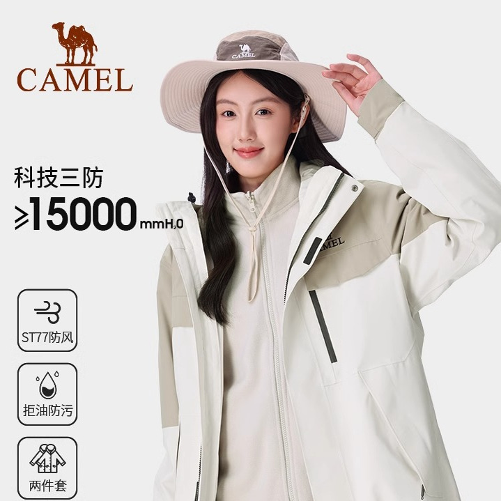 骆驼户外风暴铠甲冲锋衣男女三合一防风防水徒步爬山外套登山服