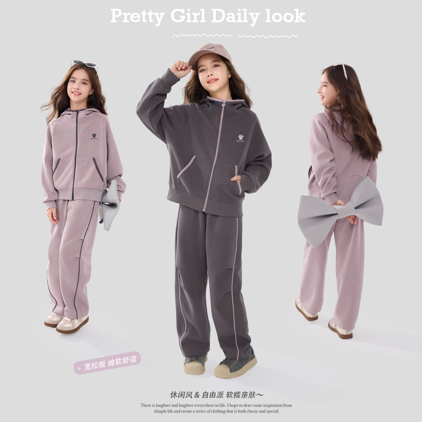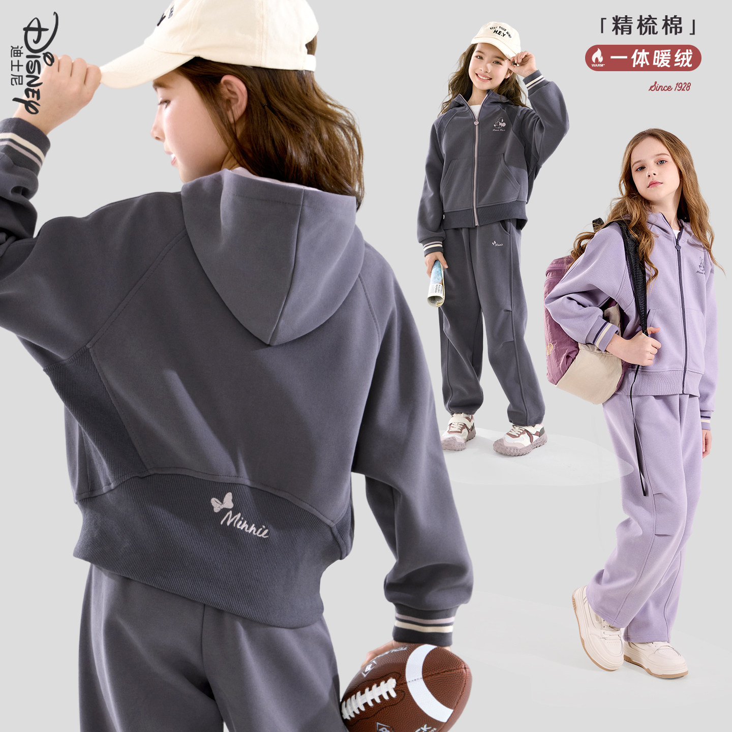 迪士尼女童休闲套装秋冬装儿童运动服大童卫衣卫裤青少年加绒加厚
