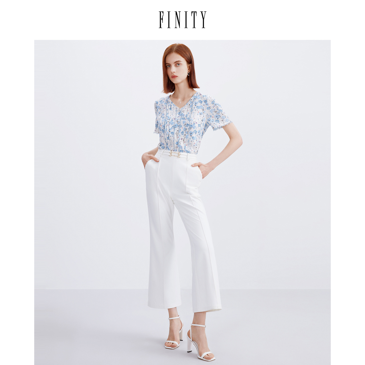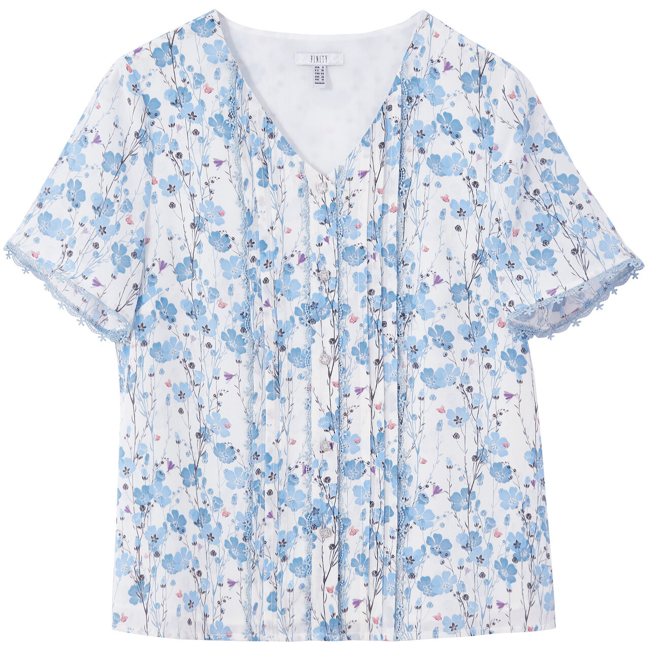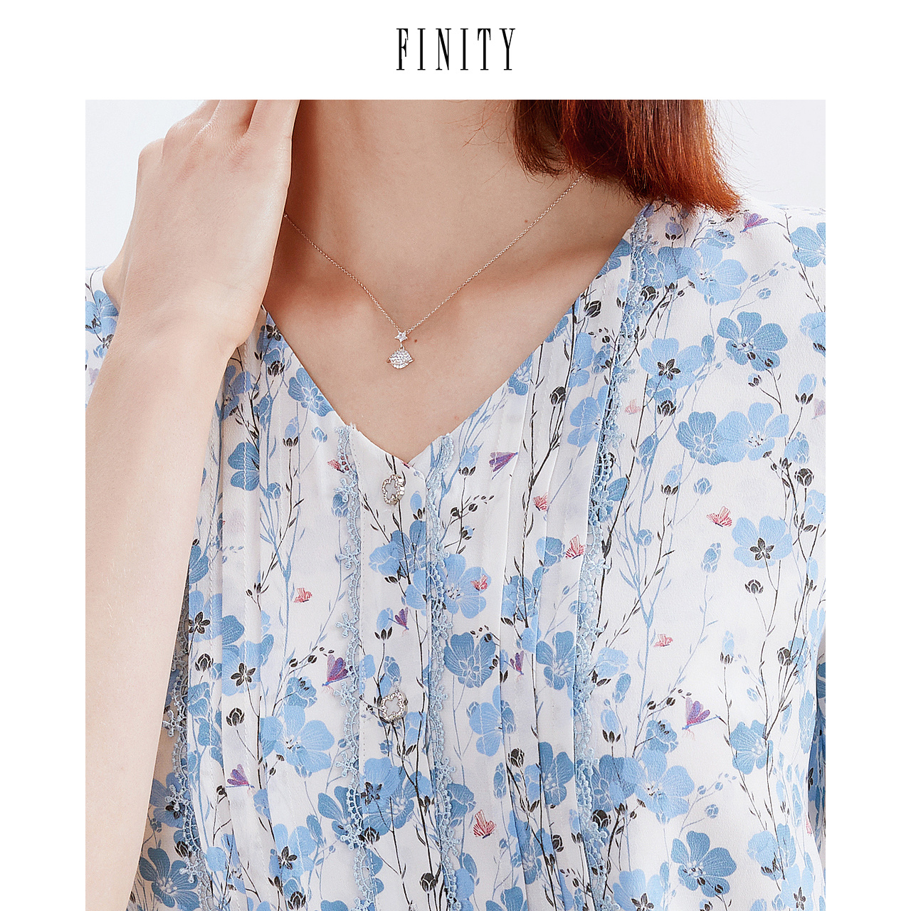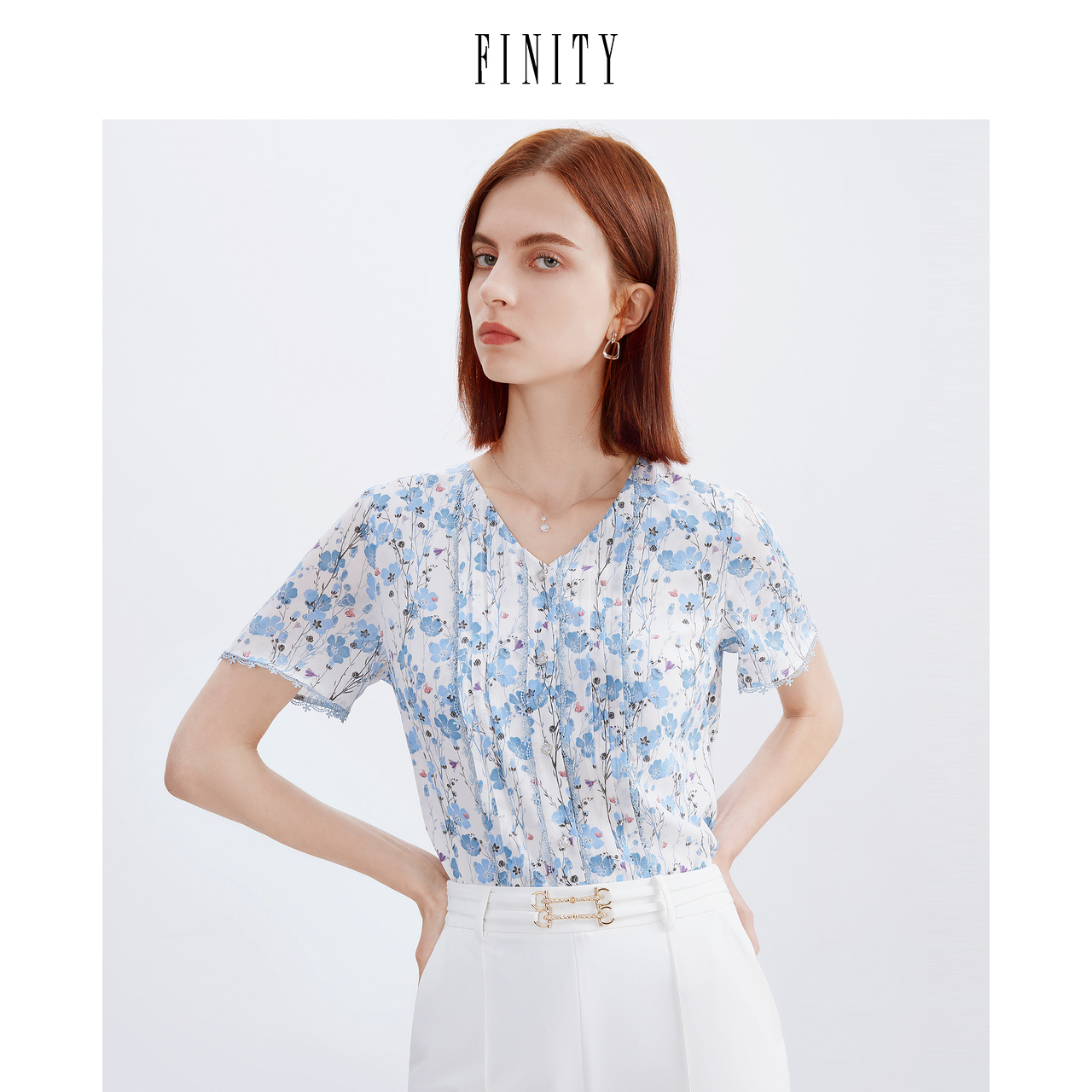 FINITY印花真丝雪纺衫夏季新桑蚕丝法式优雅气质花边短袖衬衫