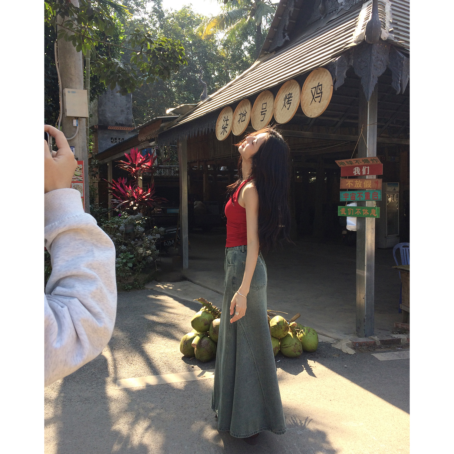 复古高腰显瘦鱼尾裙牛仔半身裙