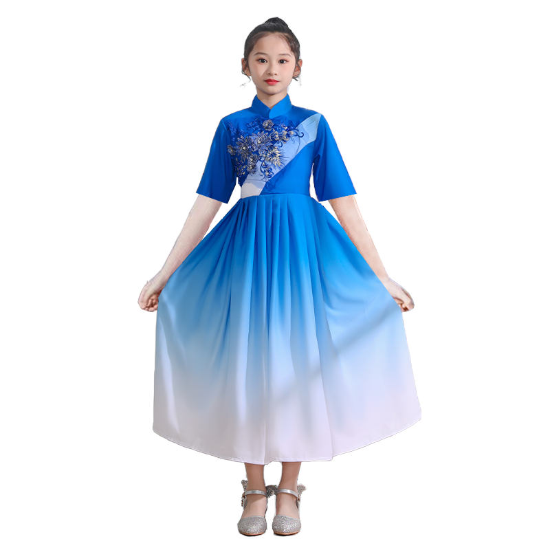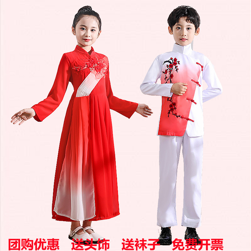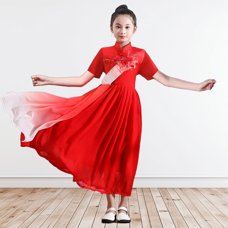 中小学生合唱朗诵儿童比赛礼服红歌女童钢琴表演大合唱演出服舞蹈