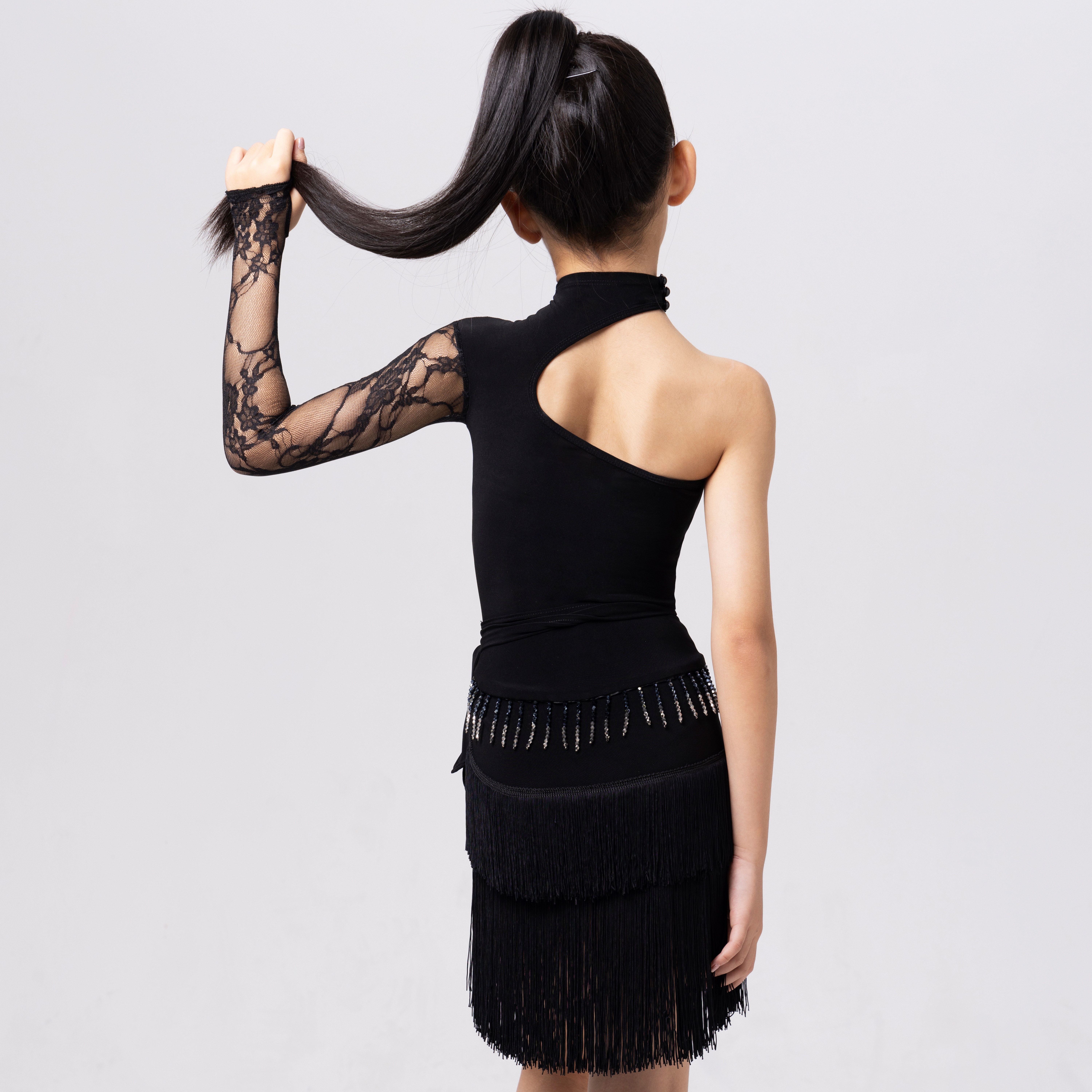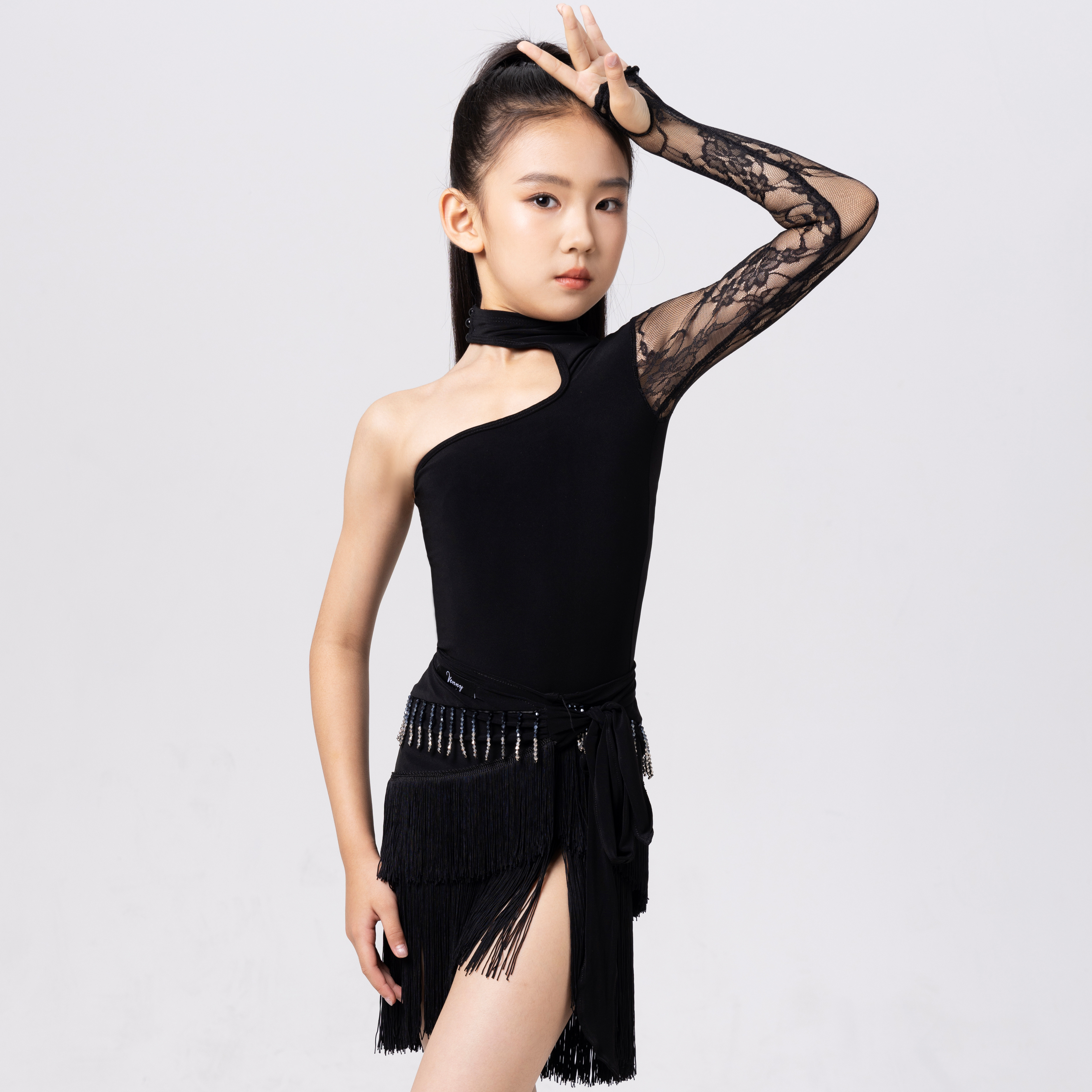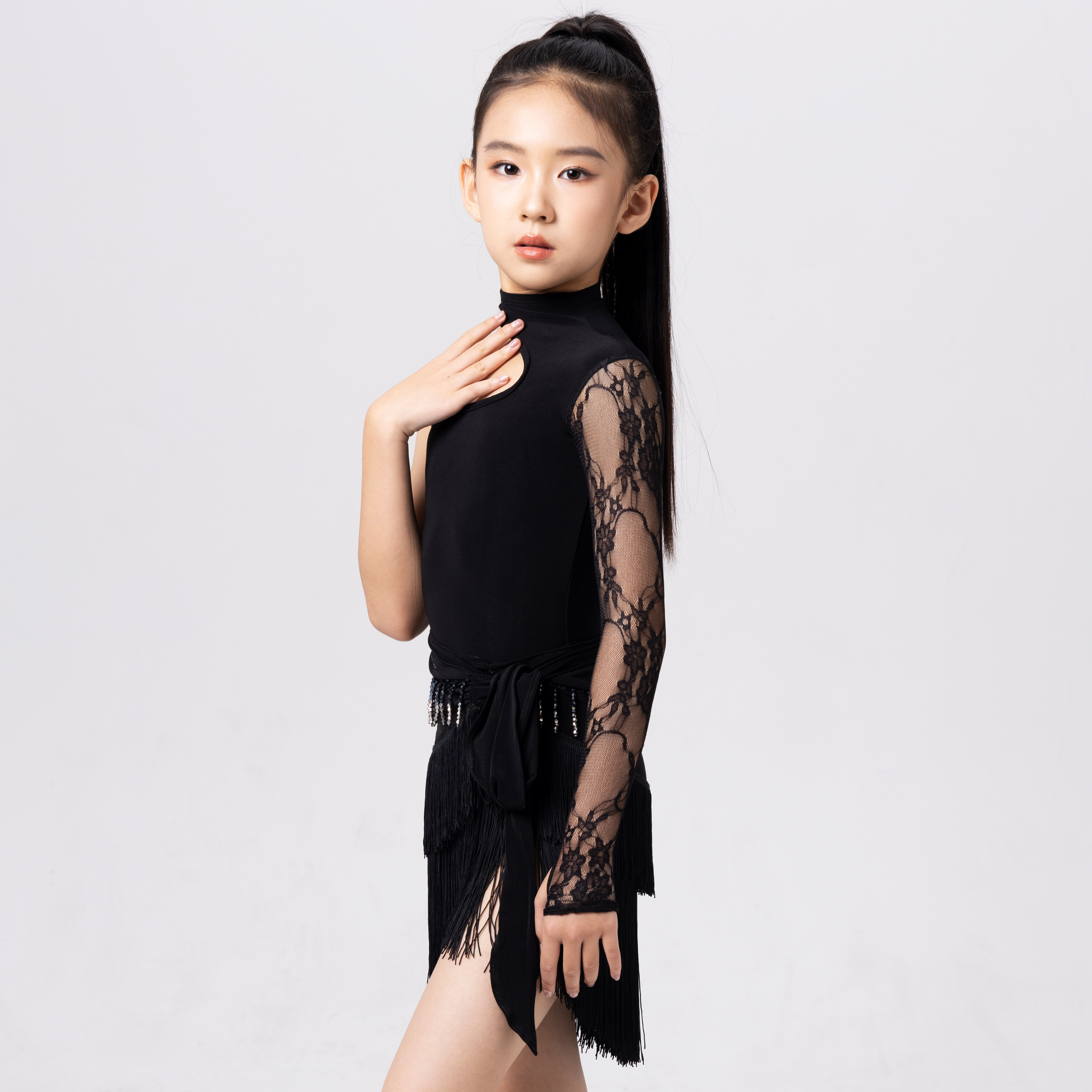 Venny薇妮拉丁舞服新款女儿童练功服蕾丝长袖上衣流苏半裙训练服