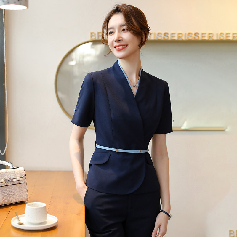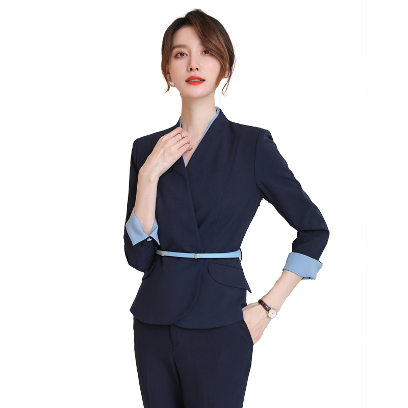 诗璐雅春秋季薄款通勤职业女装空姐范修身藏青色小西装外套女长袖