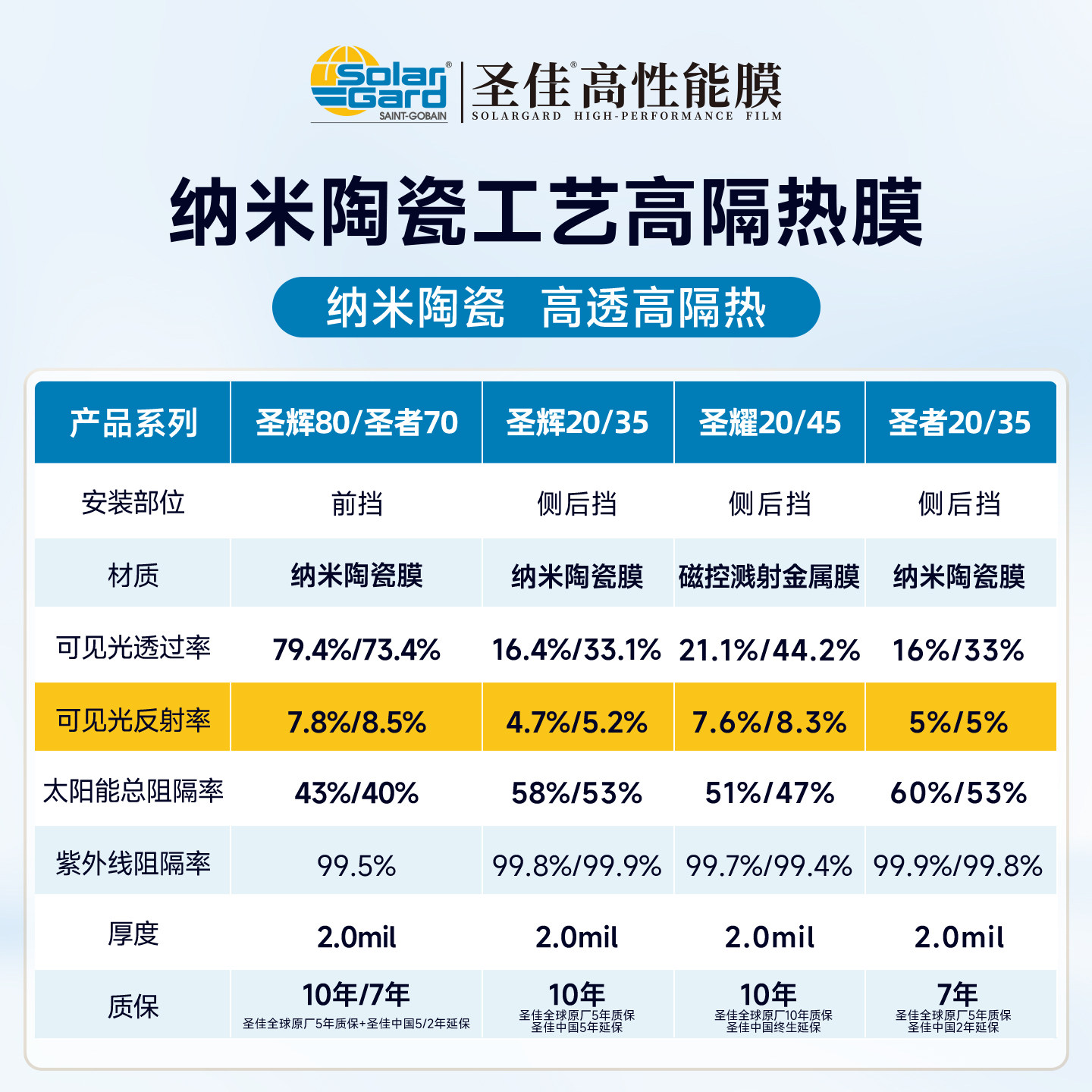 solargard圣佳玻璃防爆隔热膜圣戈班旗舰品牌圣辉80汽车太阳膜