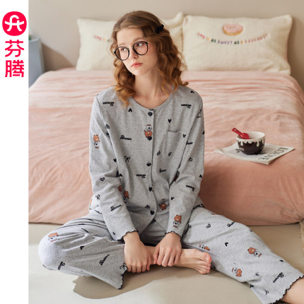 芬腾睡衣女春秋季纯棉长袖套装