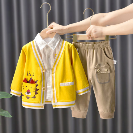 男童春装套装1一3岁儿童春秋款针织三件套男宝宝衣服新款女孩春季