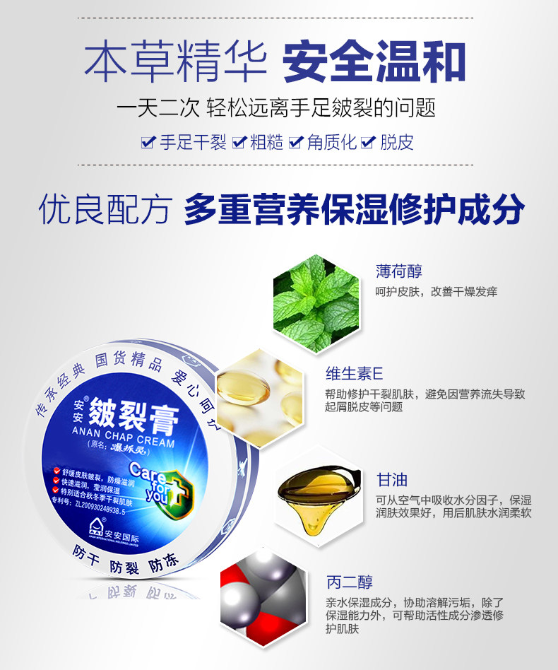 包邮安安皴裂膏爆拆灵裂可宁手霜护手足防冻裂干燥开裂洗头房男女