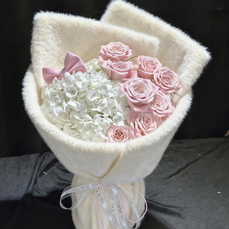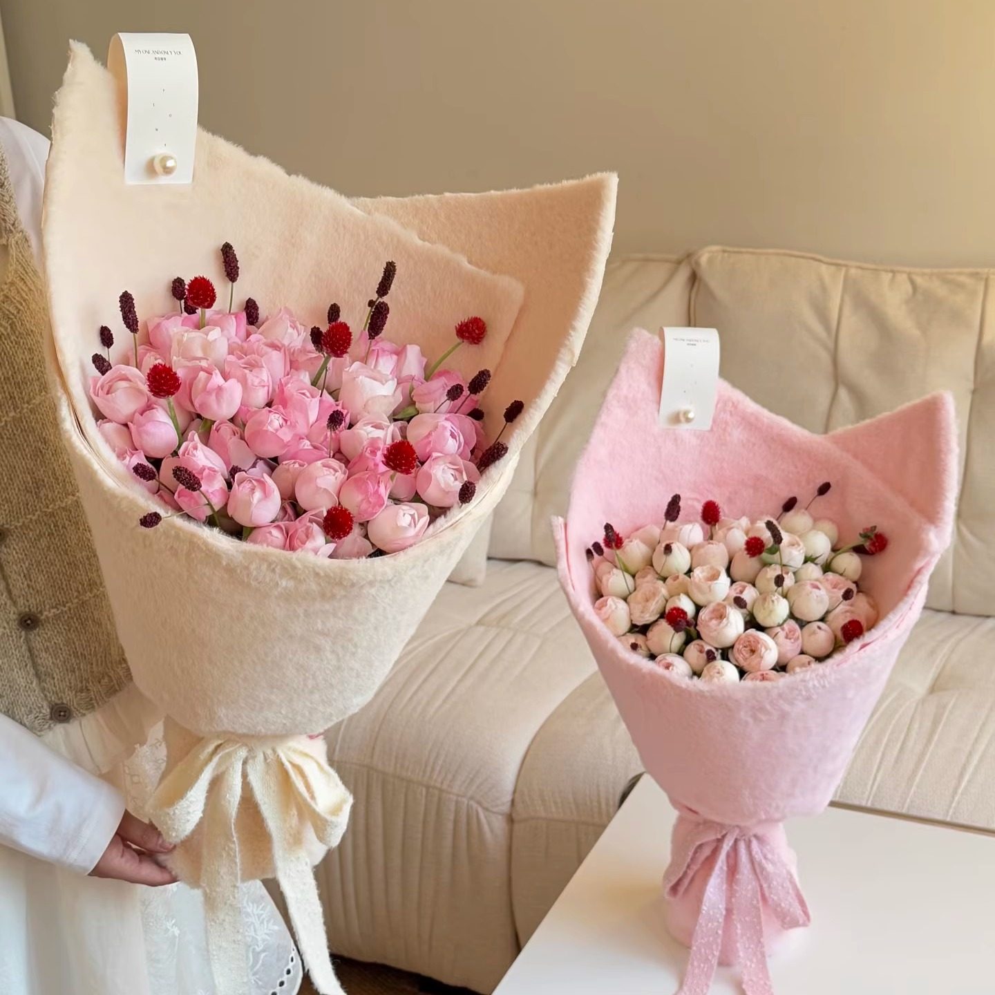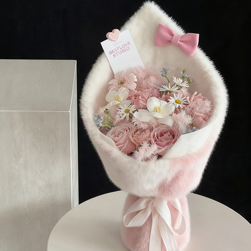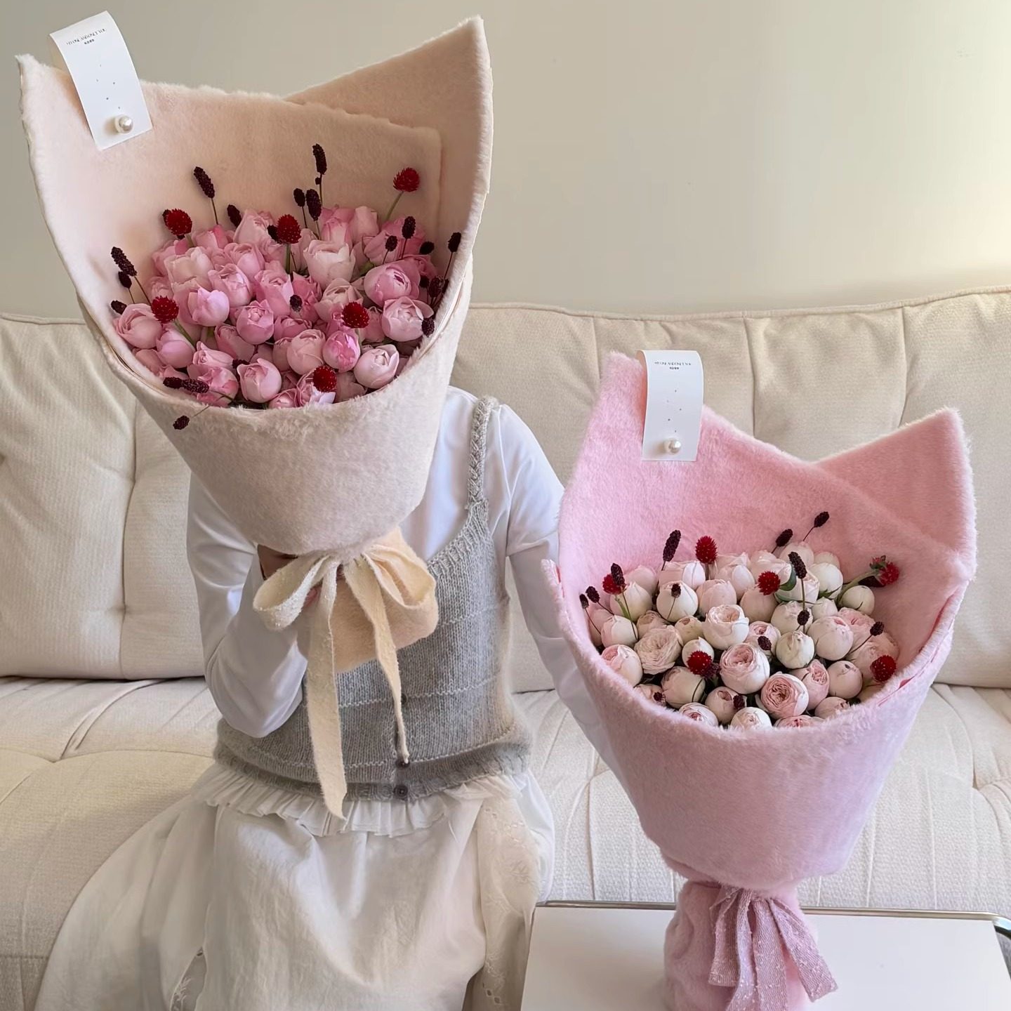 花喜爱 秋冬毛绒绒布料鲜花花包装纸布艺花艺包花布面料diy资材