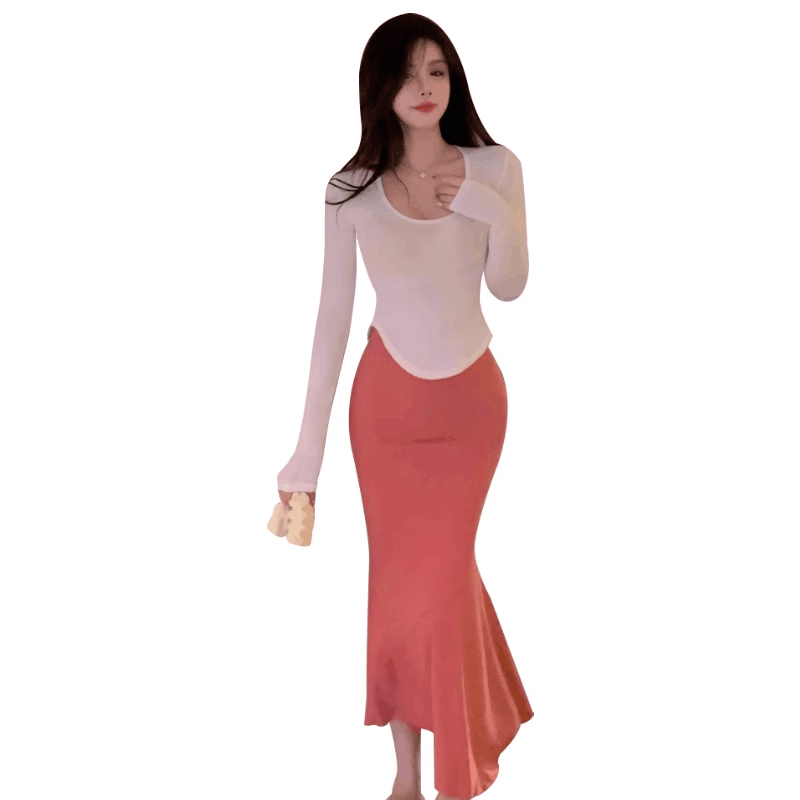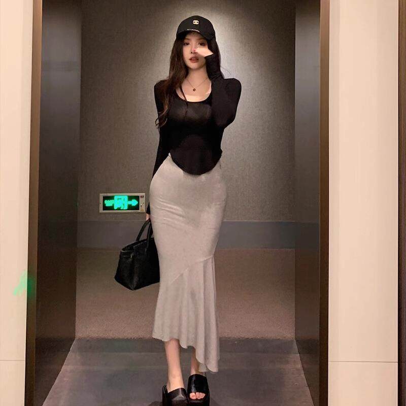绝美鱼尾长裙子紧身包臀裙显身材连衣裙性感两件套纯欲御姐套装女