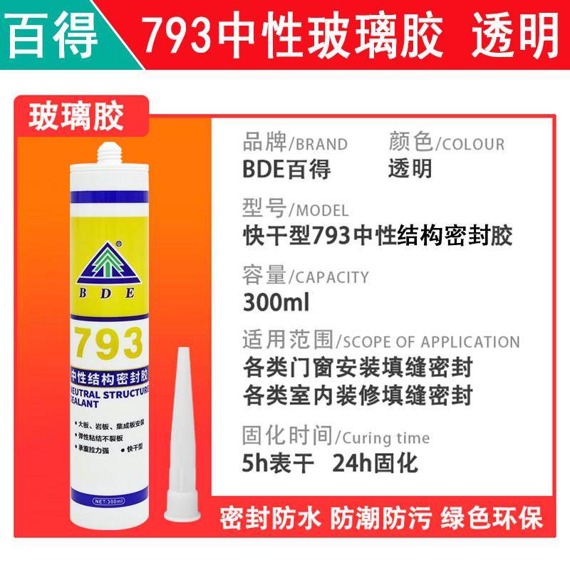BDE百得793玻璃胶厨房中性门窗胶置物架板透明免钉胶鱼缸卫生间用