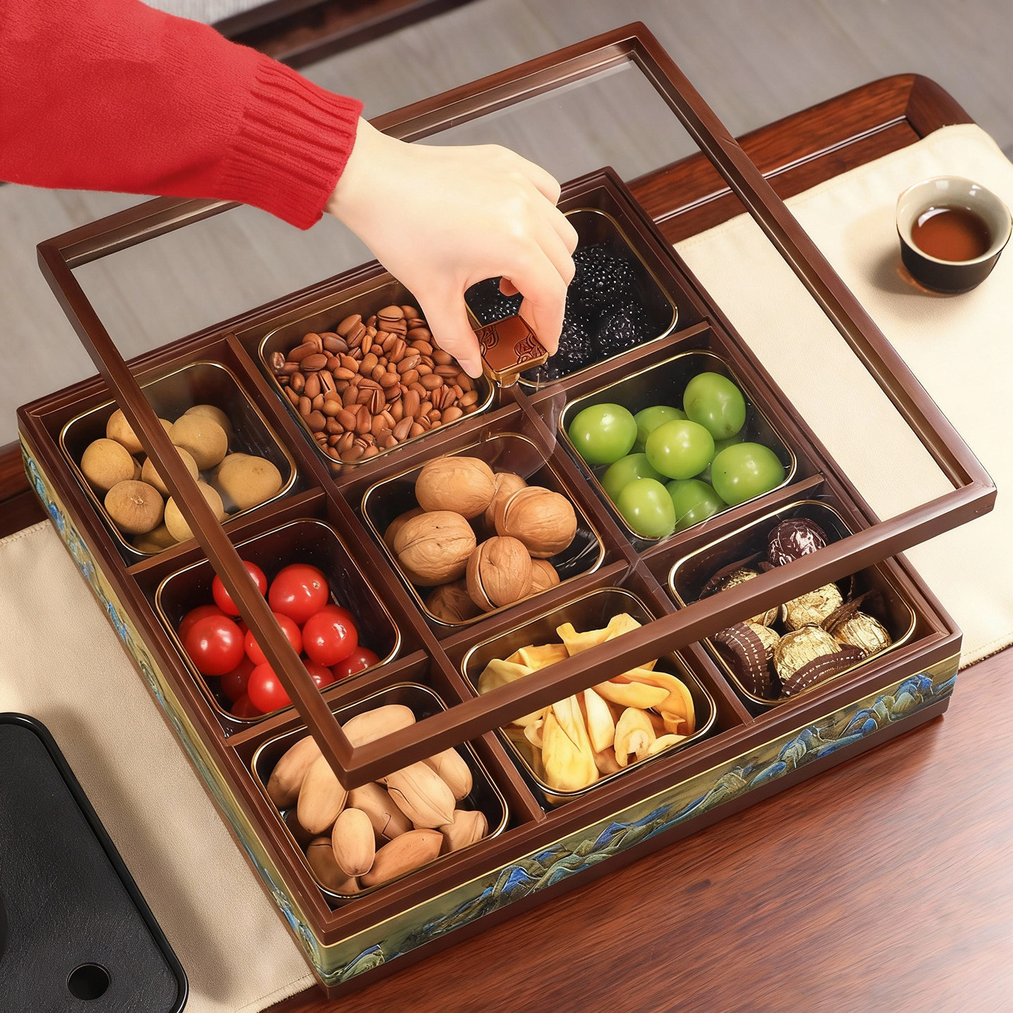 九宫格干果盘客厅家用轻奢高端茶几零食糖果收纳水果盘瓜子坚果盒