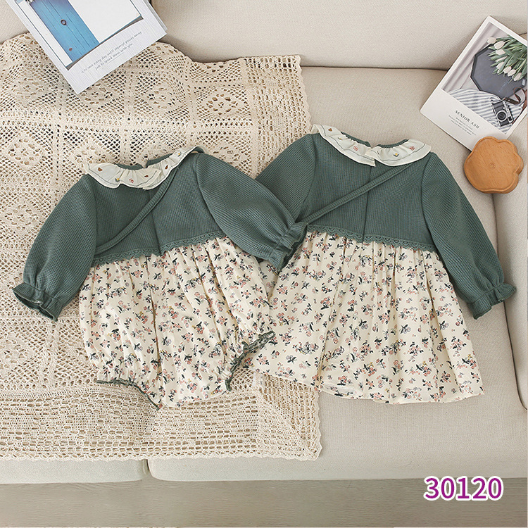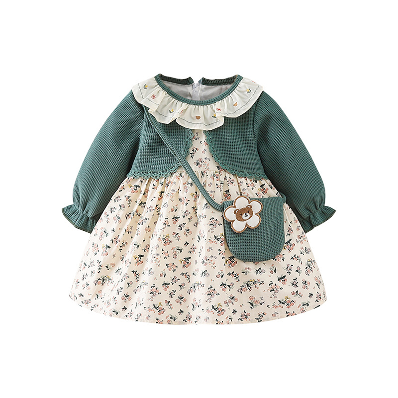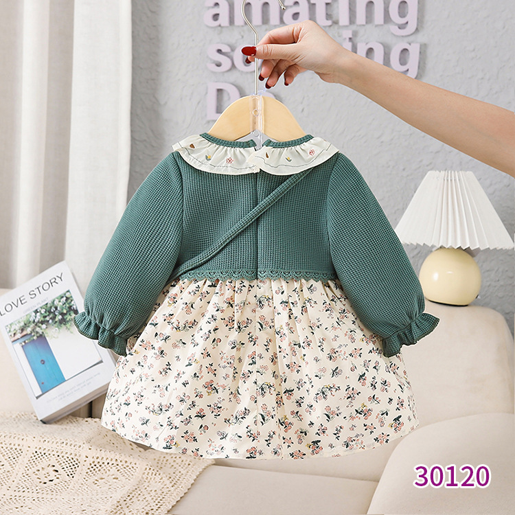 秋季女童碎花假两件连衣裙洋气公主裙儿童开衫套装裙